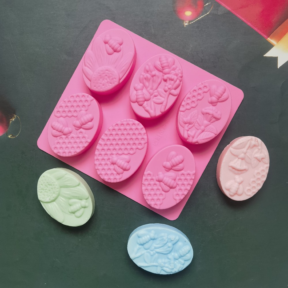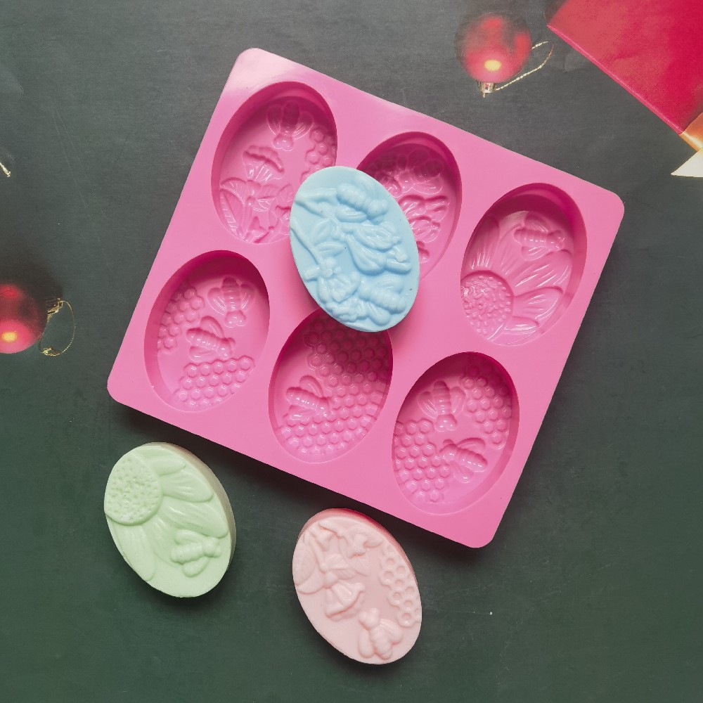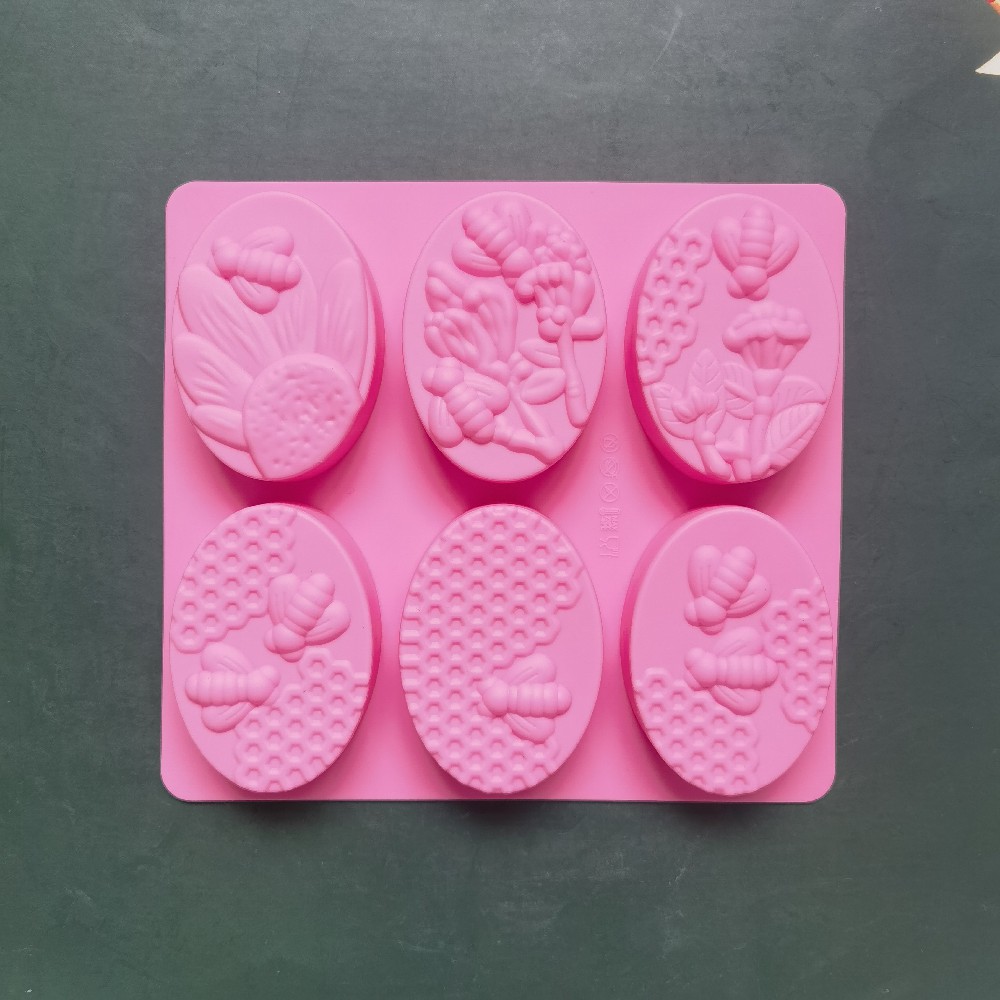 硅胶6连椭圆蜜蜂肥皂模具蛋糕果冻布丁肥皂蛋糕模具烘焙工具105