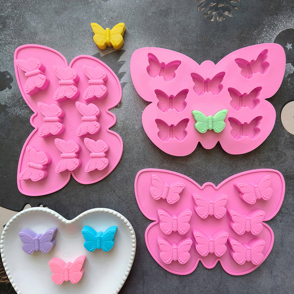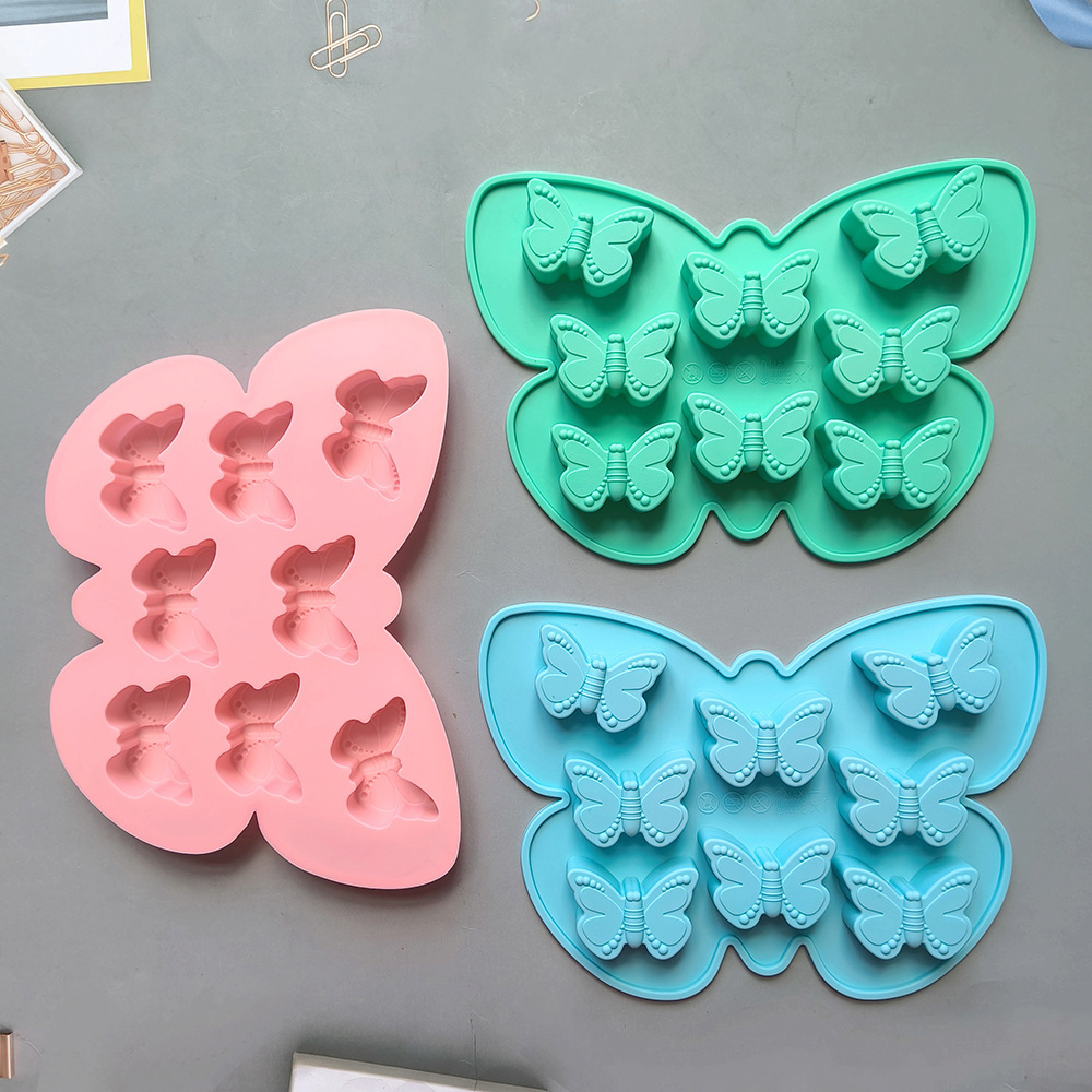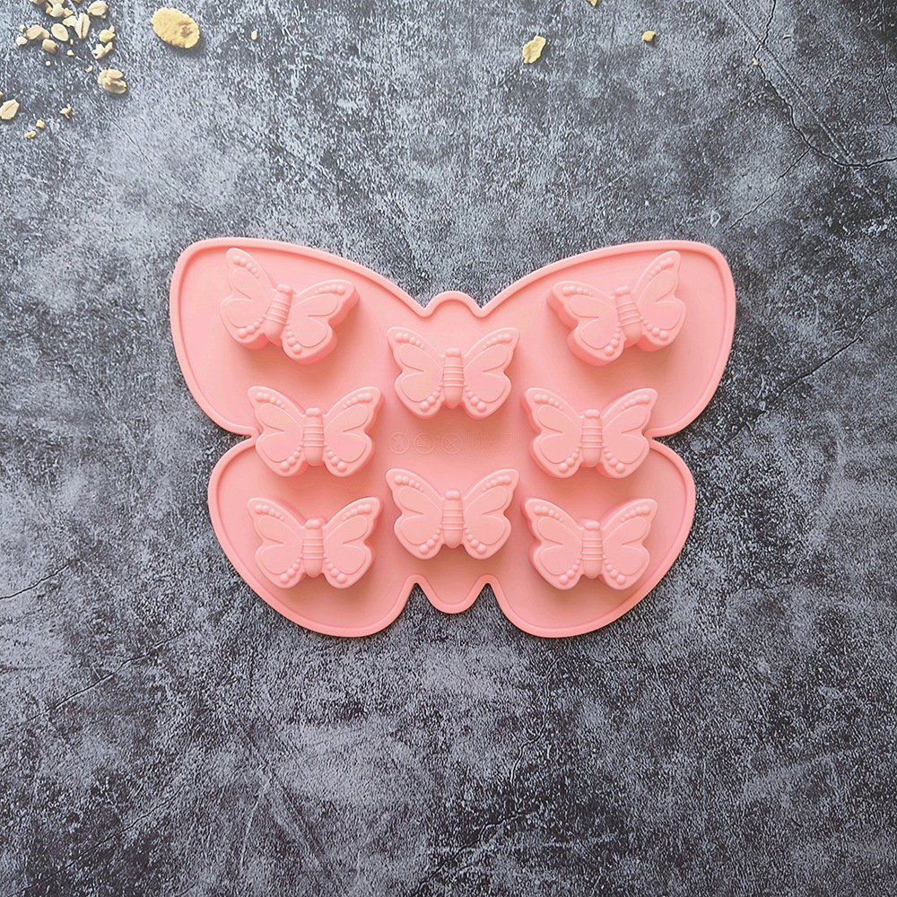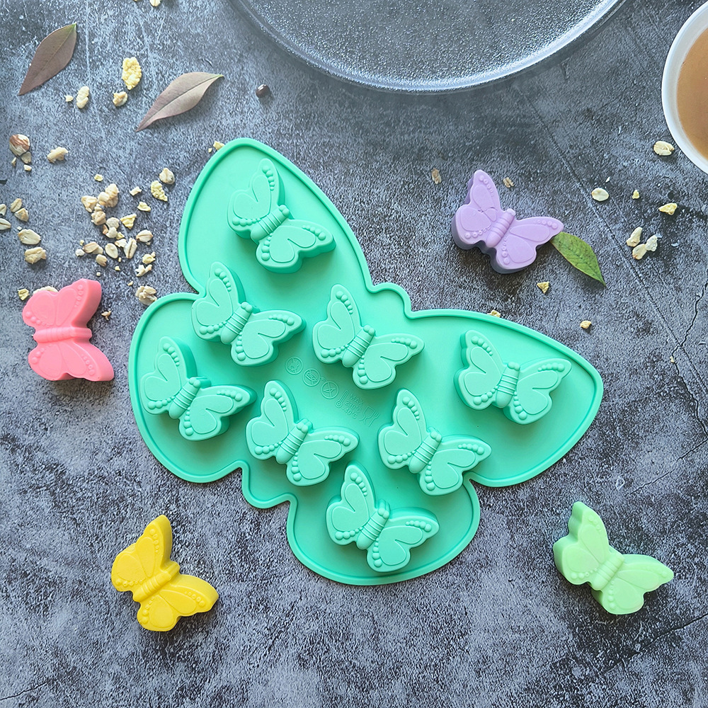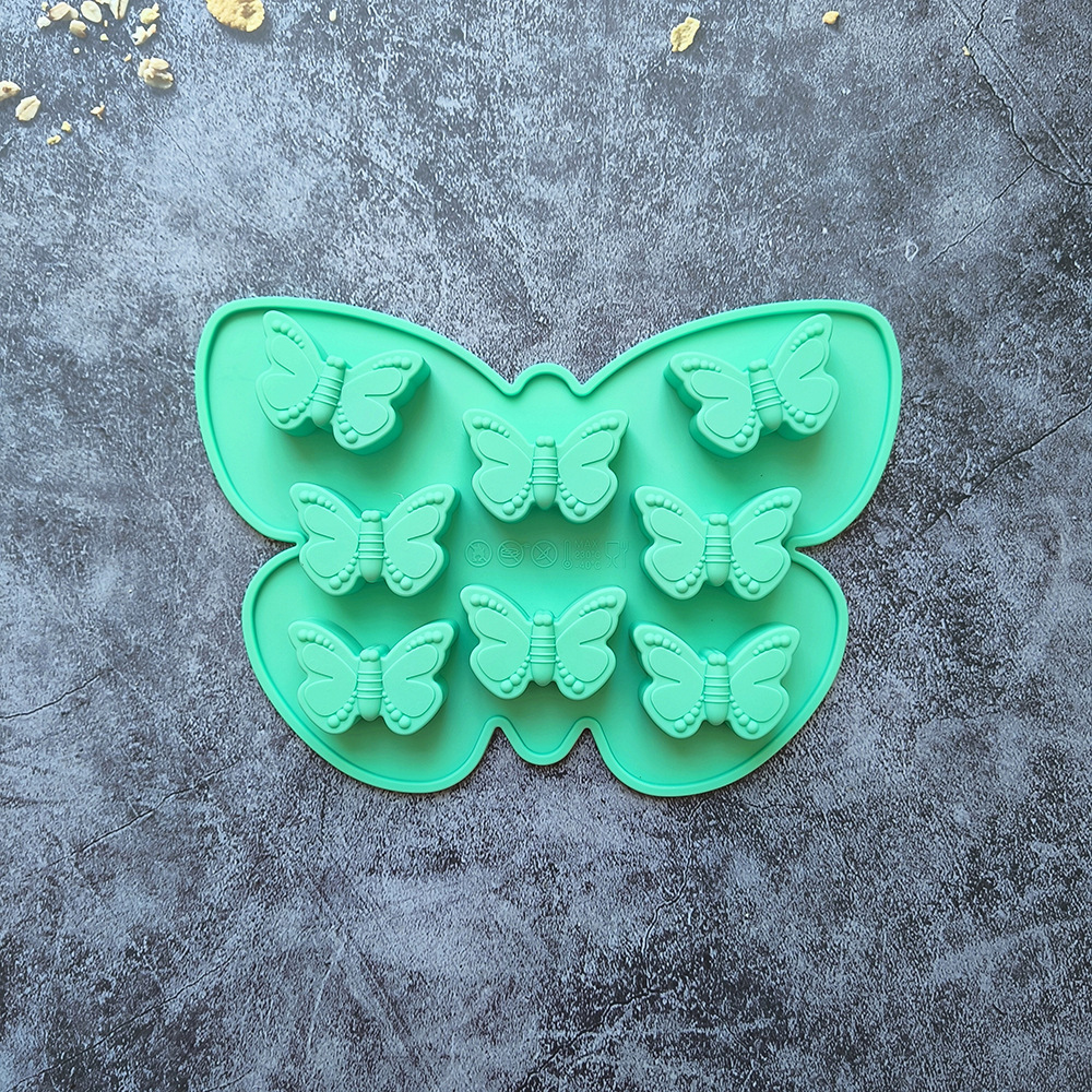 硅胶8连蝴蝶706蛋糕巧克力模具3D滴胶糖果布丁饼干烘焙模具