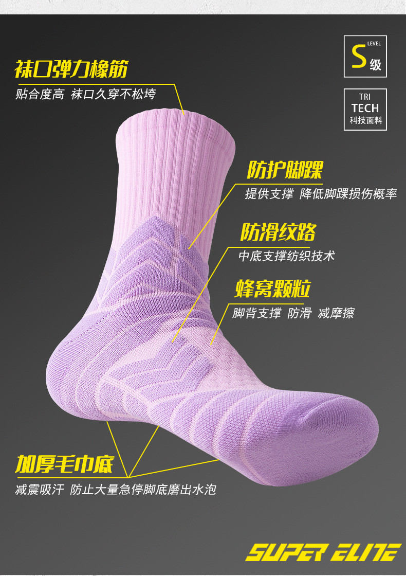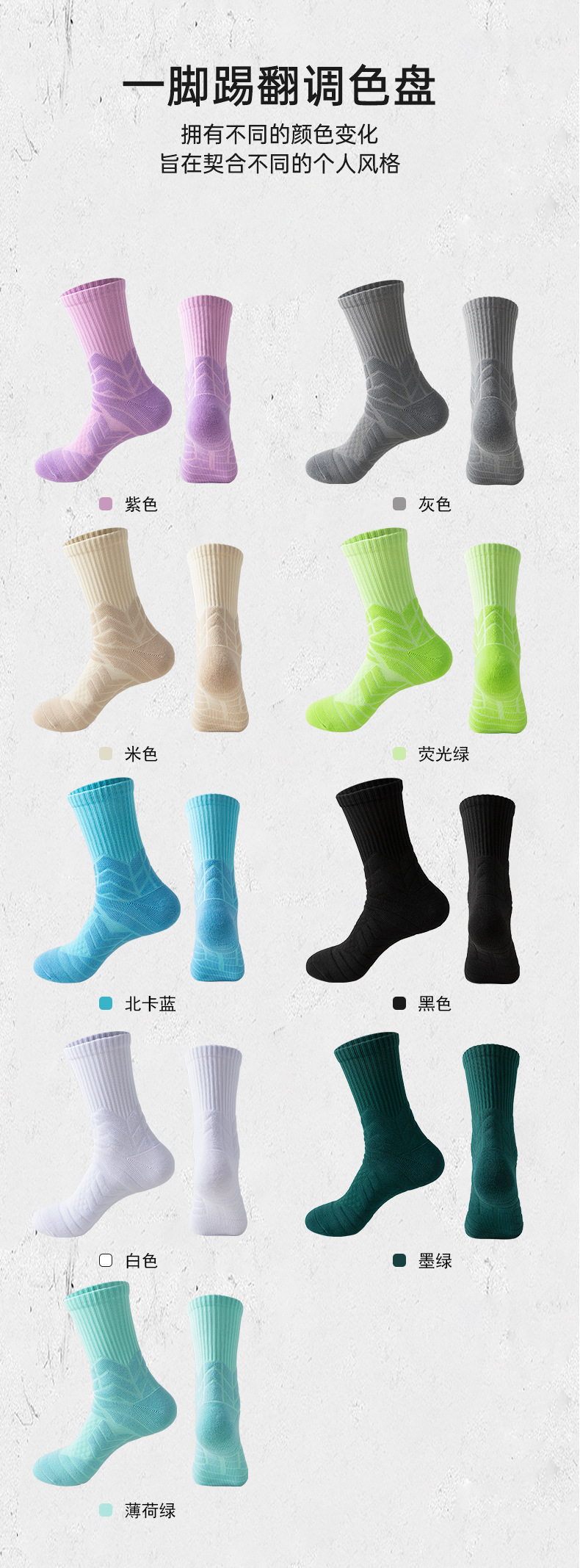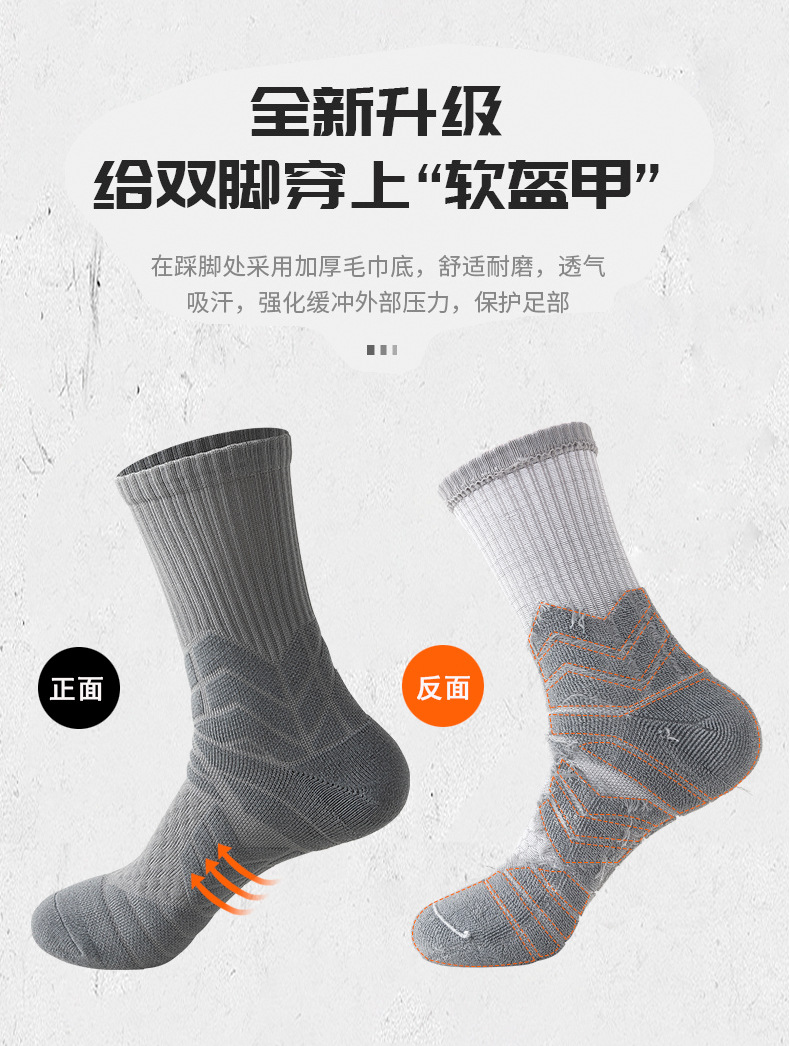新款男士毛巾底运动袜 马卡龙机甲实战篮球袜 加厚高帮精英袜