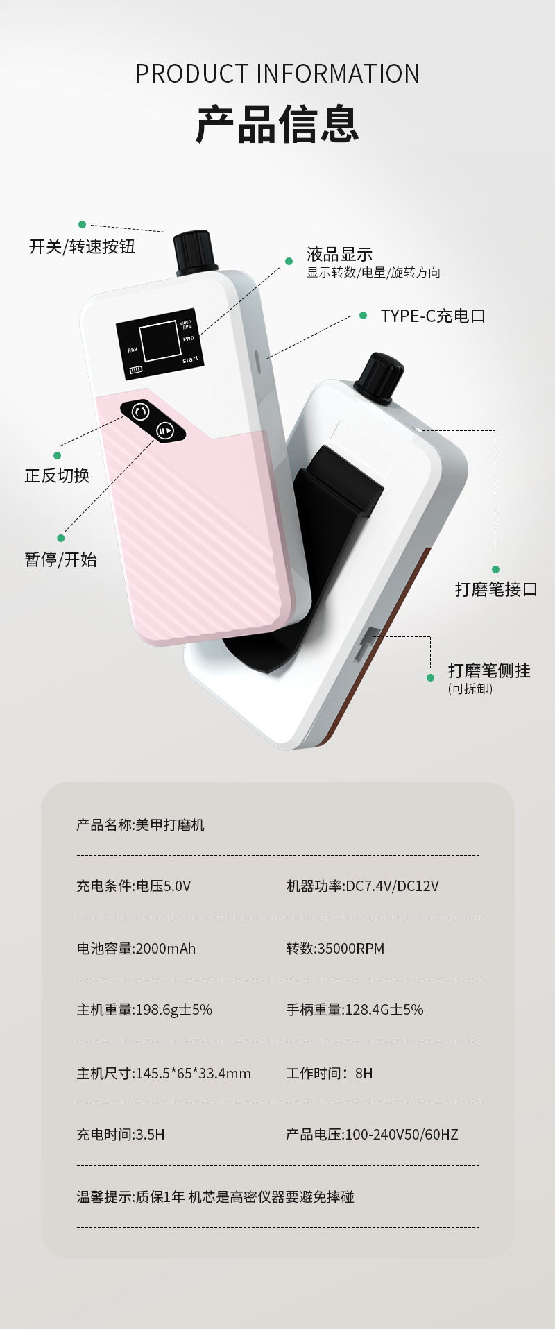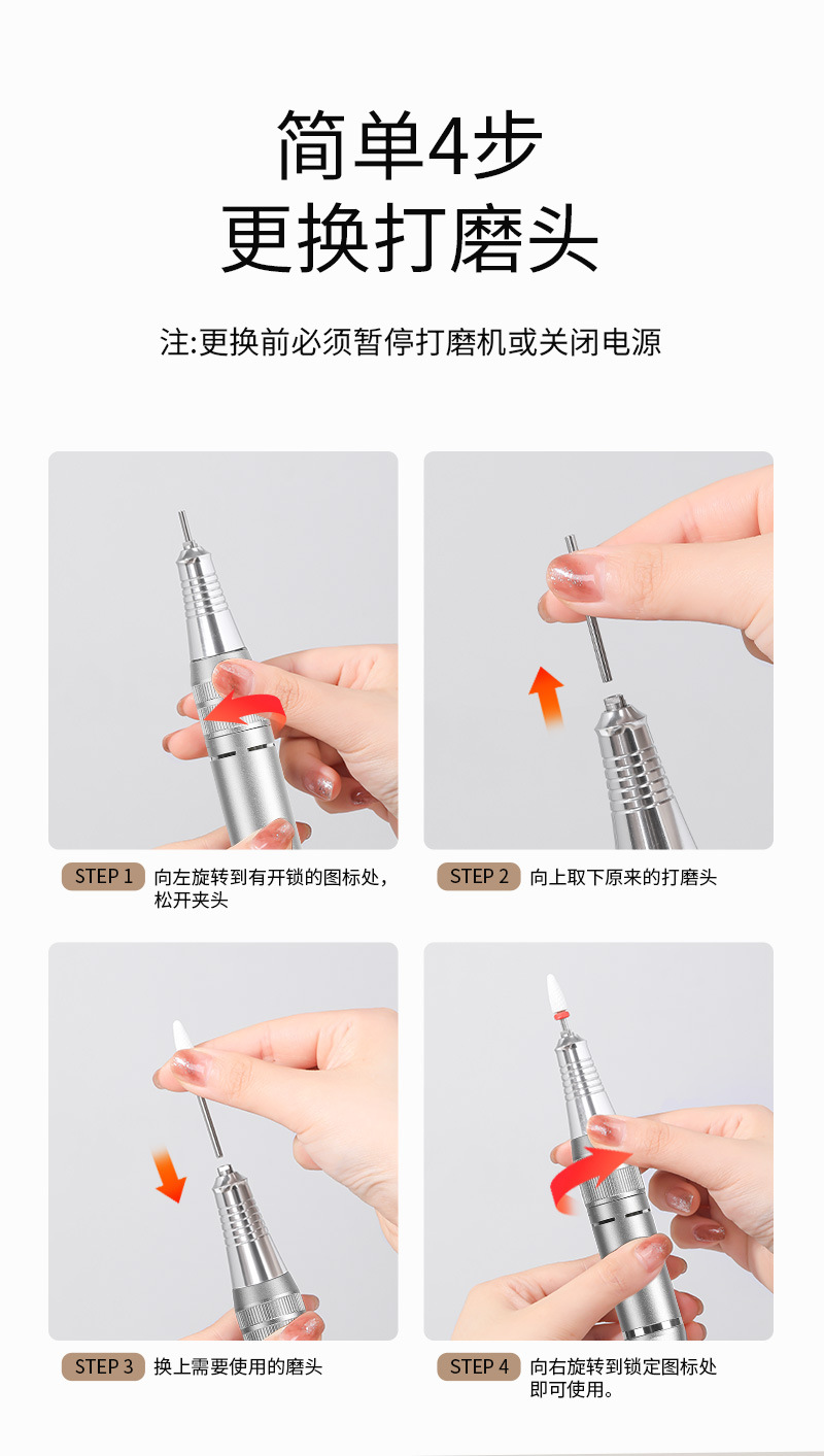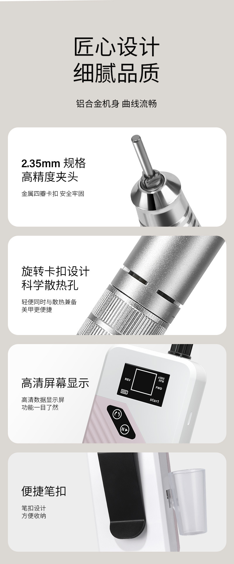 跨境充电款指甲打磨器专业便携式电动卸甲美甲打磨机美甲店推荐