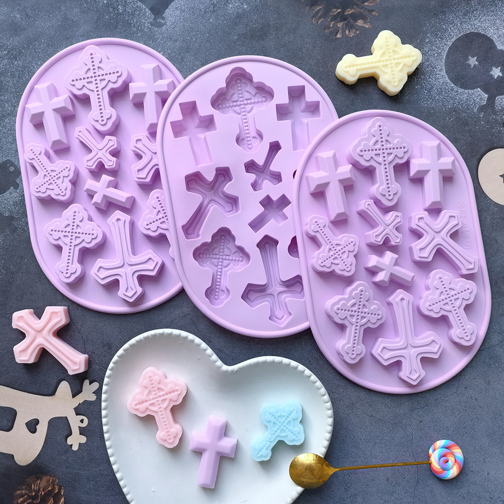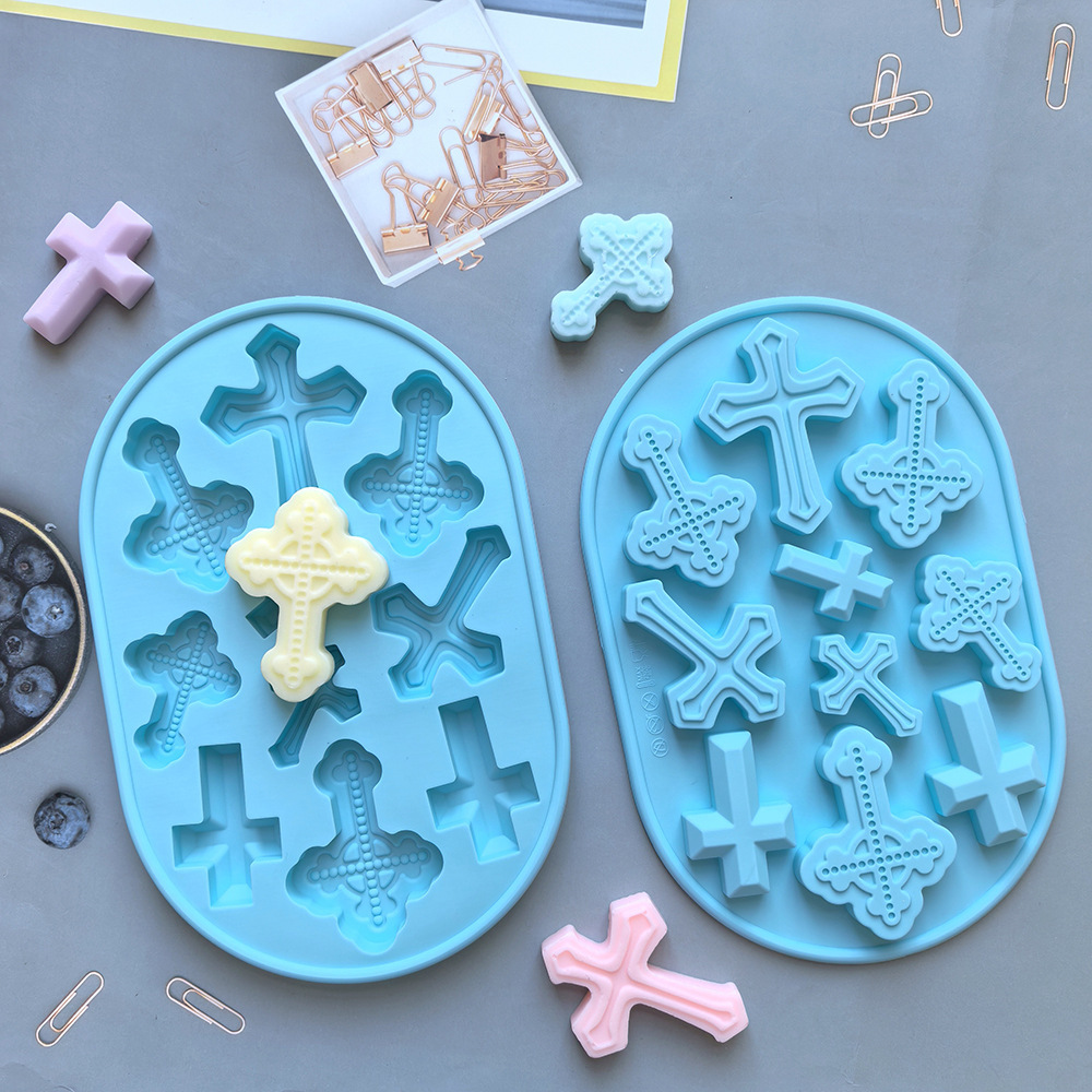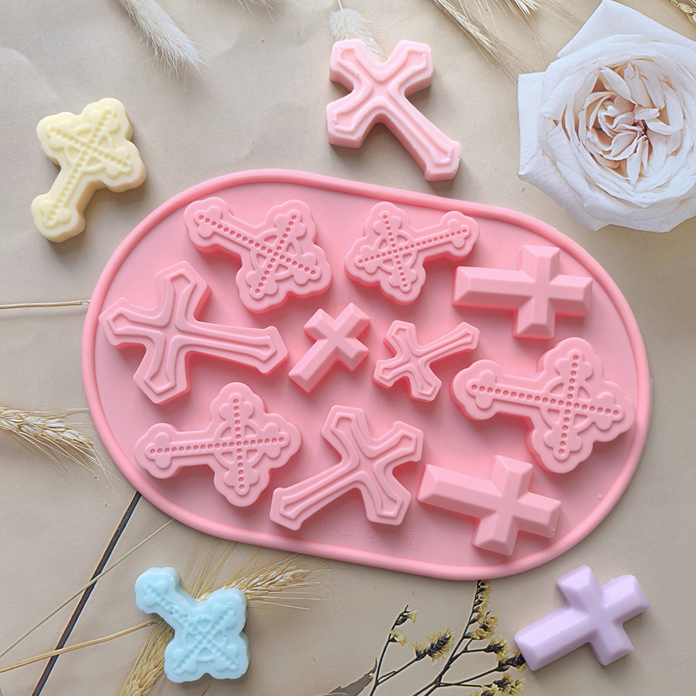 10连复古十字架359硅胶模具糖果布丁甜点模具蛋糕装饰烘焙用具