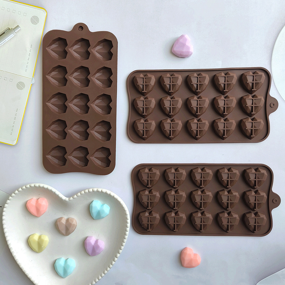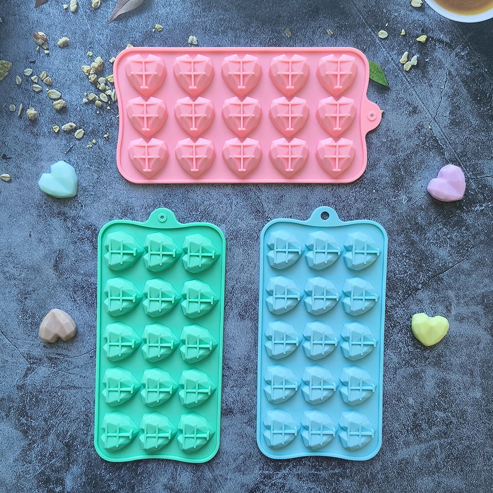 硅胶15连钻石爱心巧克力模具软糖冰格模DIY蛋糕装饰烘焙工具68