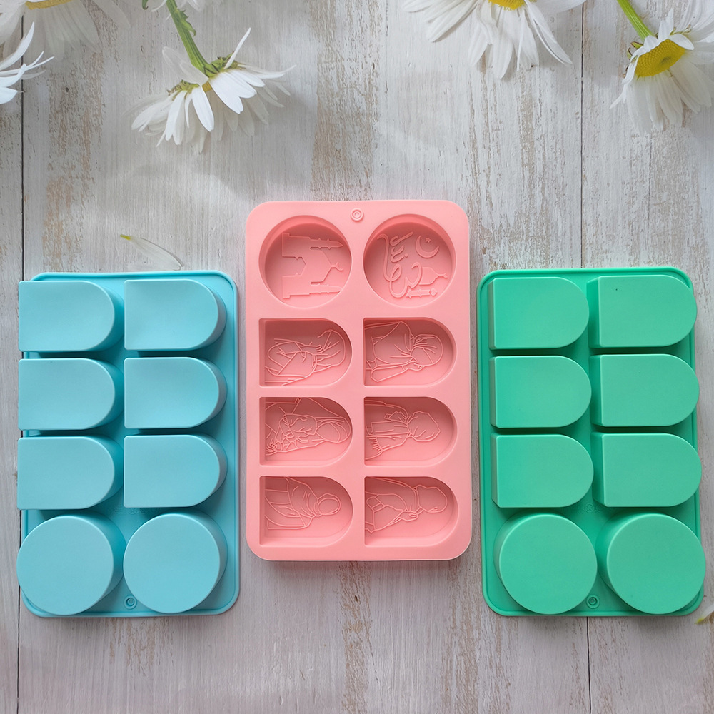 8连圆形椭圆雕花731硅胶模具巧克力圆形蛋糕模具手工皂烘焙工具