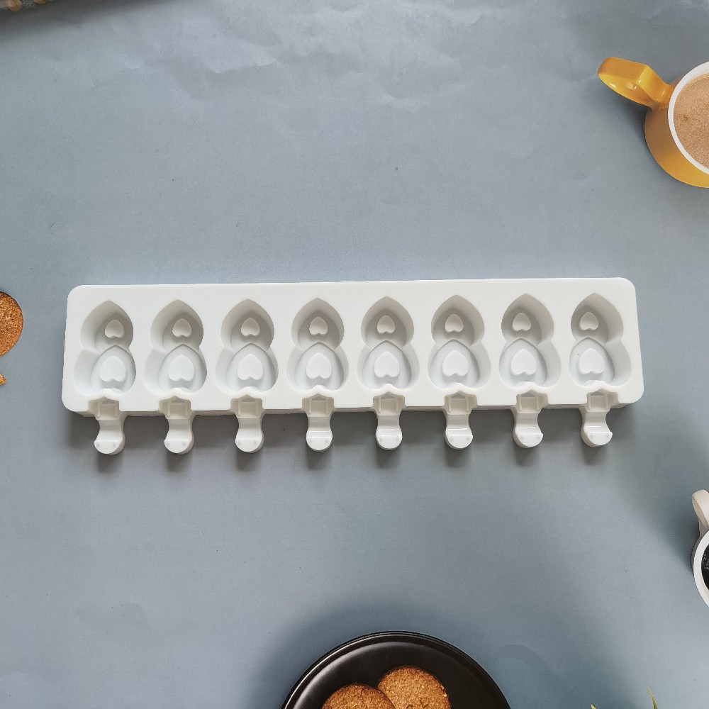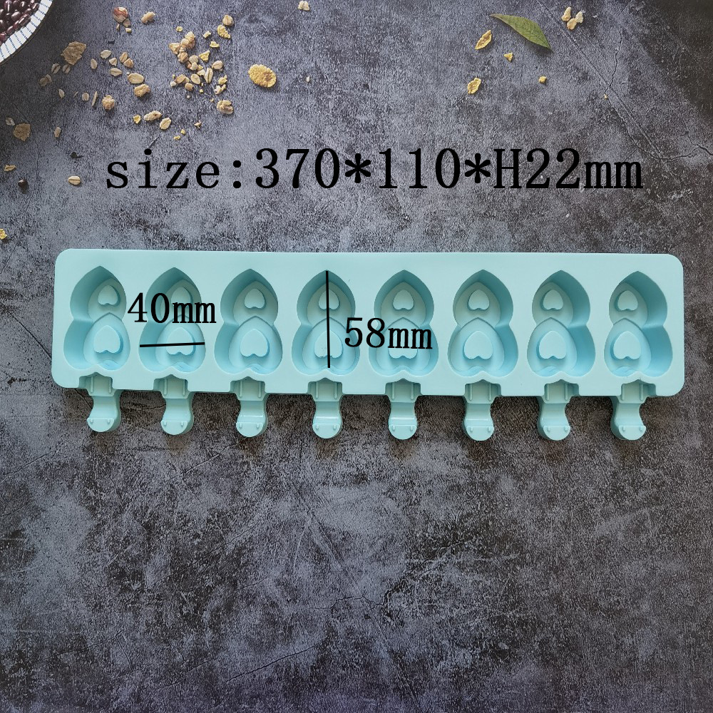 8连双爱心494冰淇淋硅胶模具甜点冰棍雪糕模具冰格夏季派对用品蓝