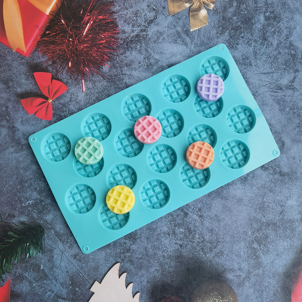 18连华夫饼173巧克力硅胶模具冰块布丁甜点模具肥皂烘焙用具蓝
