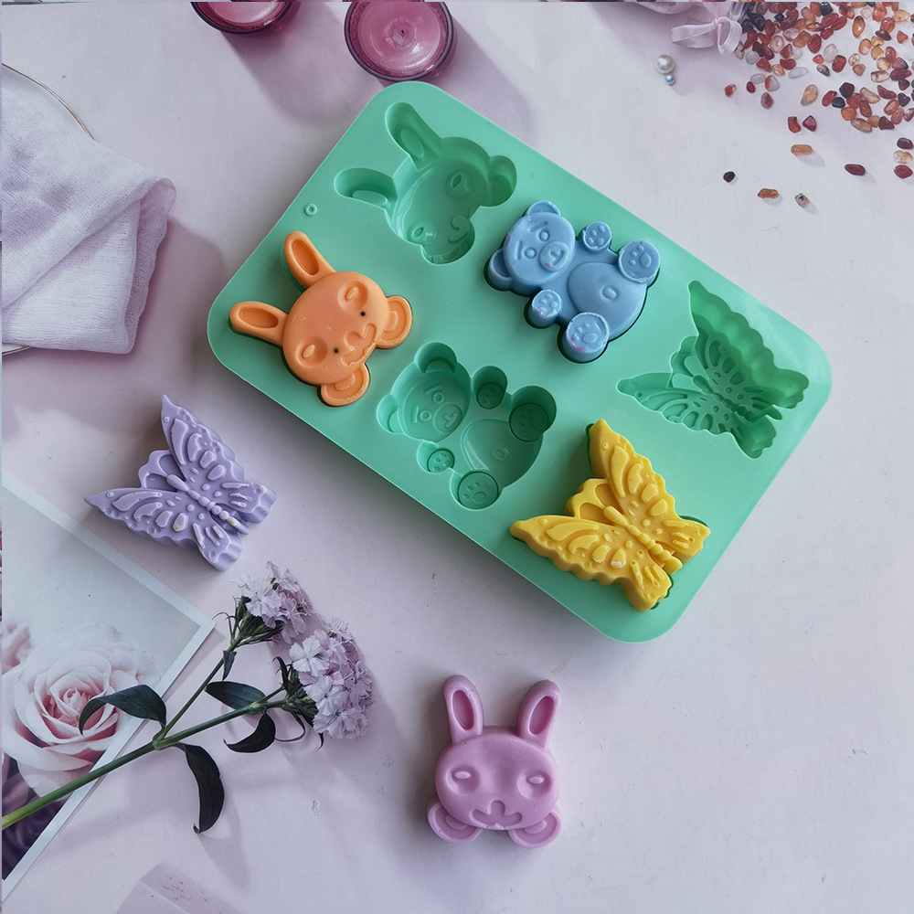 6连熊兔蝴蝶硅胶蛋糕巧克力硅胶模具甜点冰块模具烘焙蛋糕马绿
