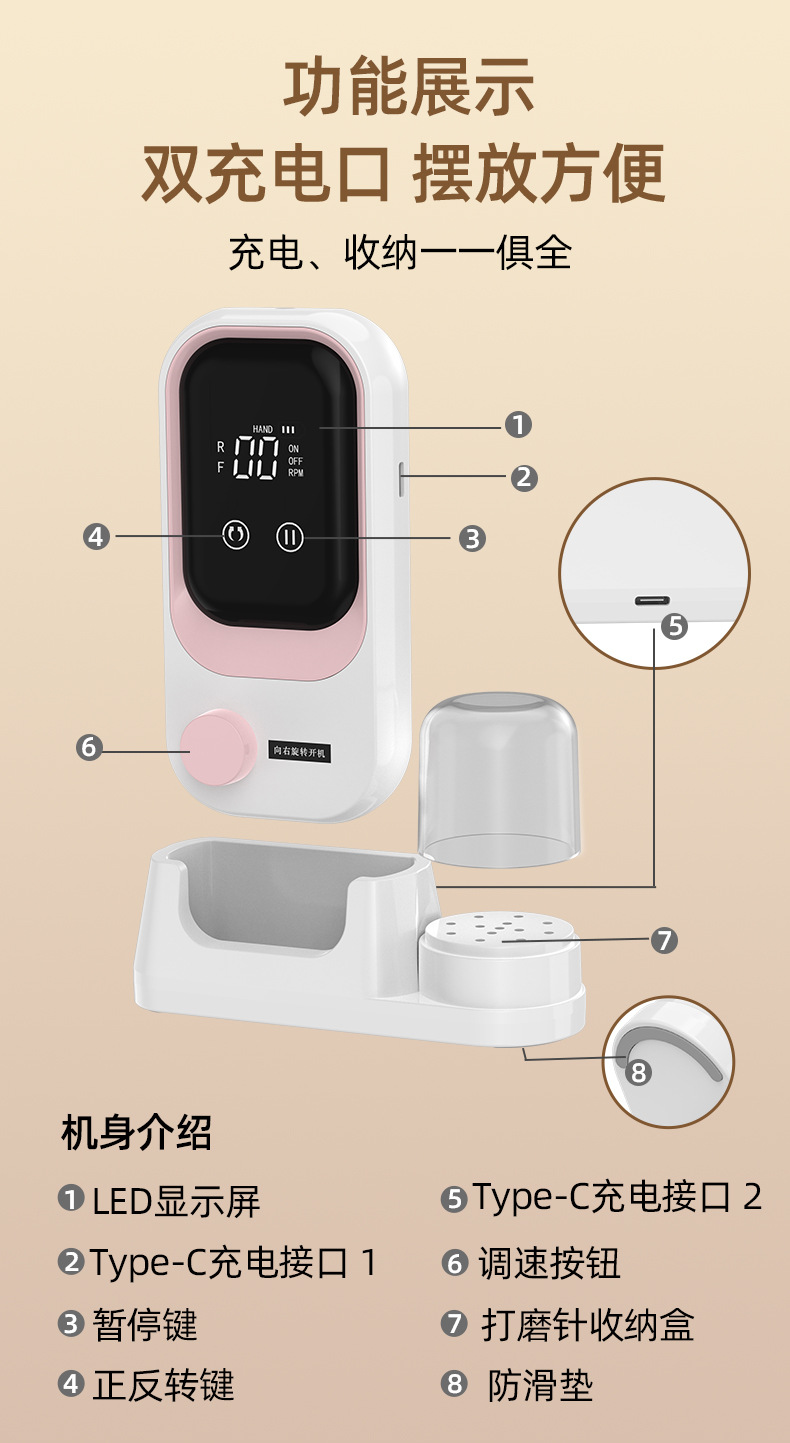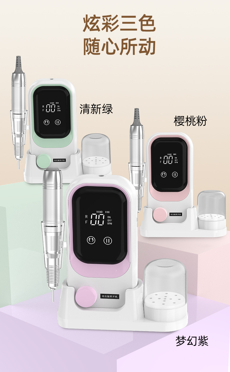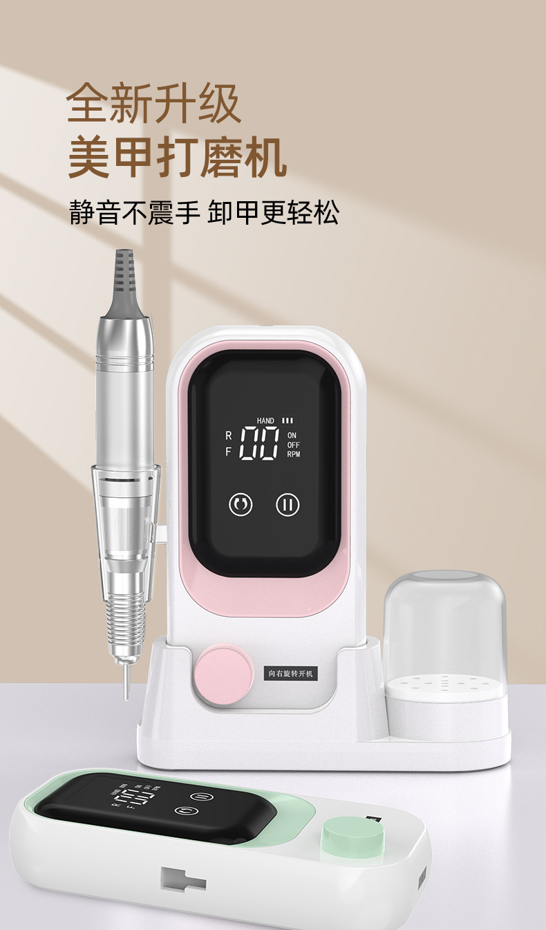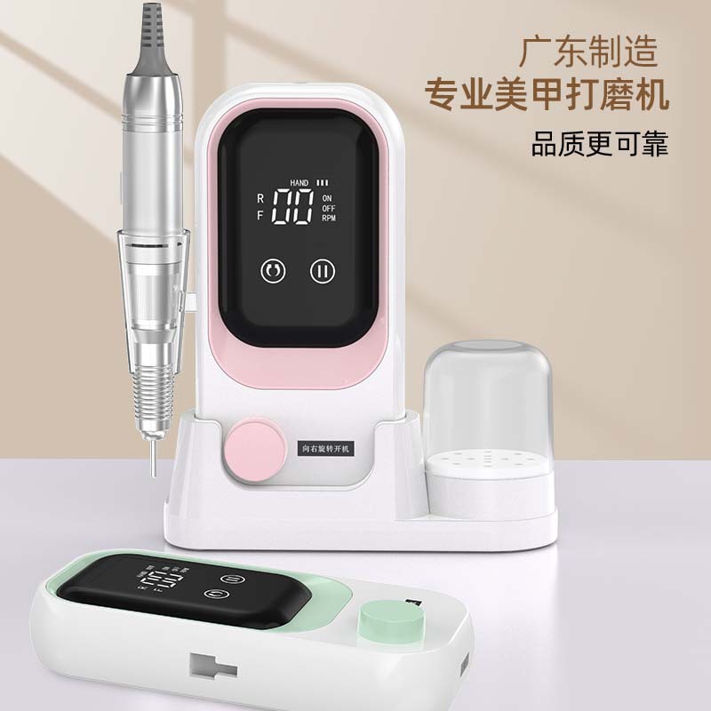新款带底座收纳蓄电款指甲打磨机便携电动去死皮卸甲美甲打磨机
