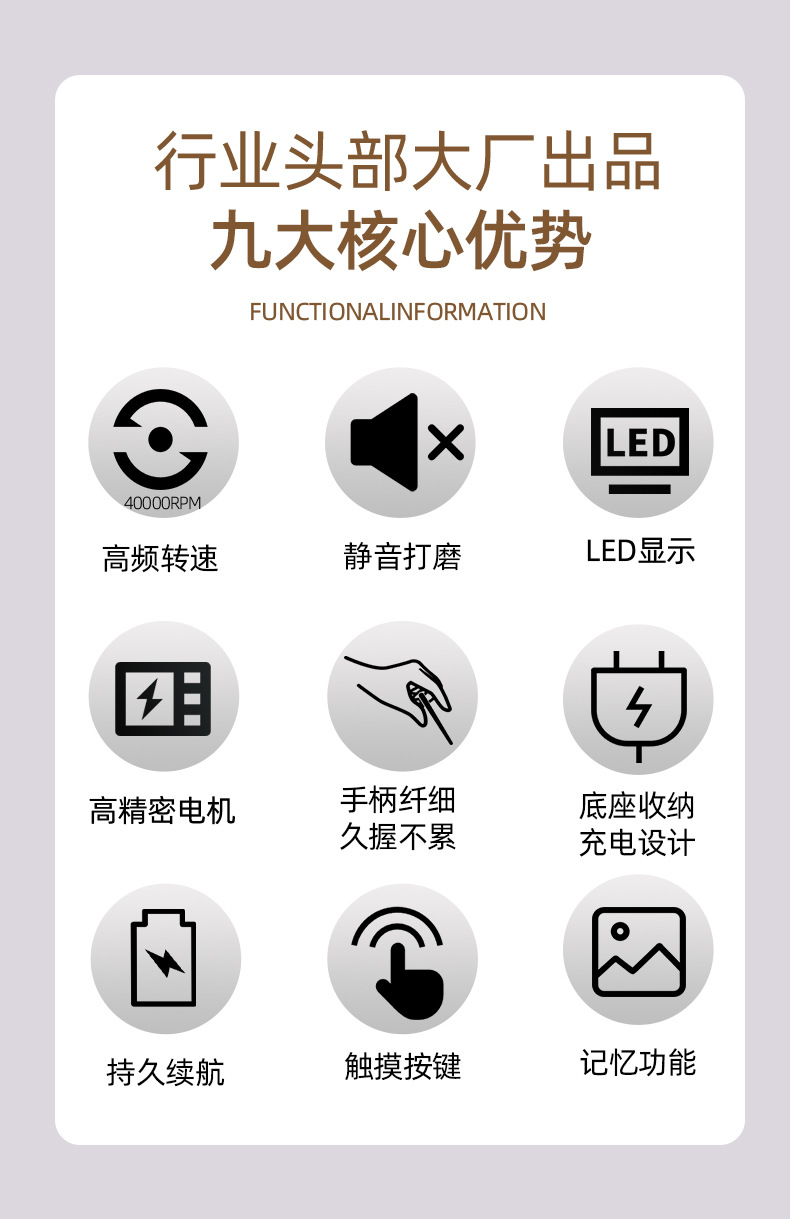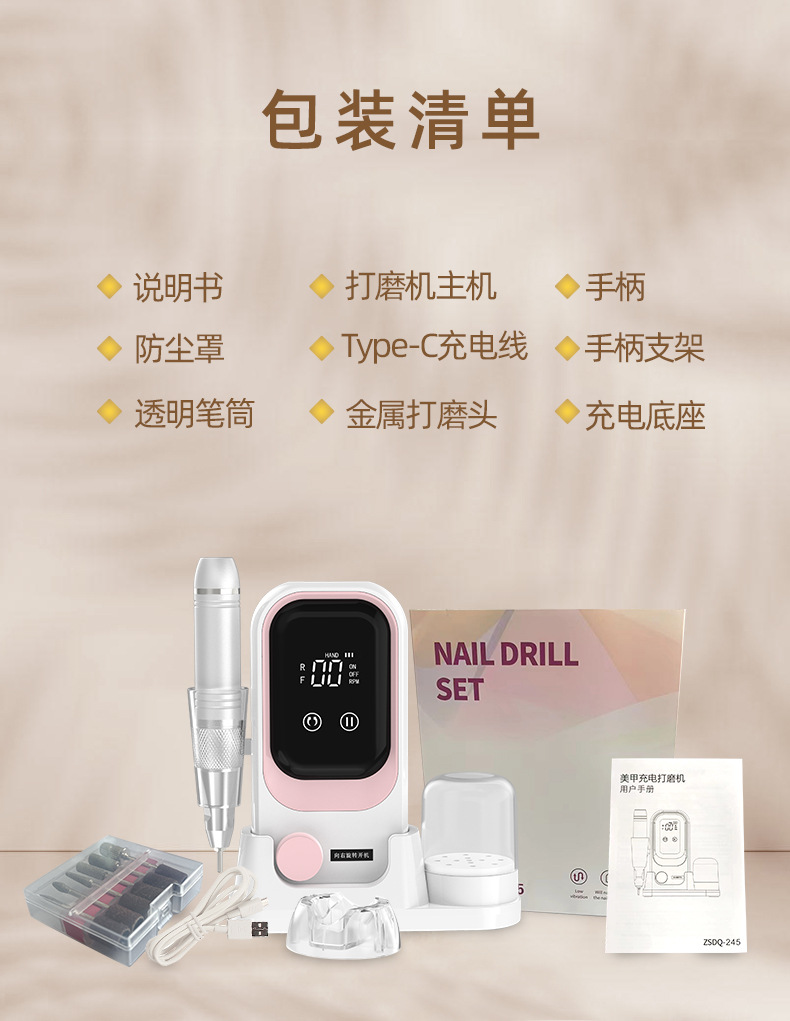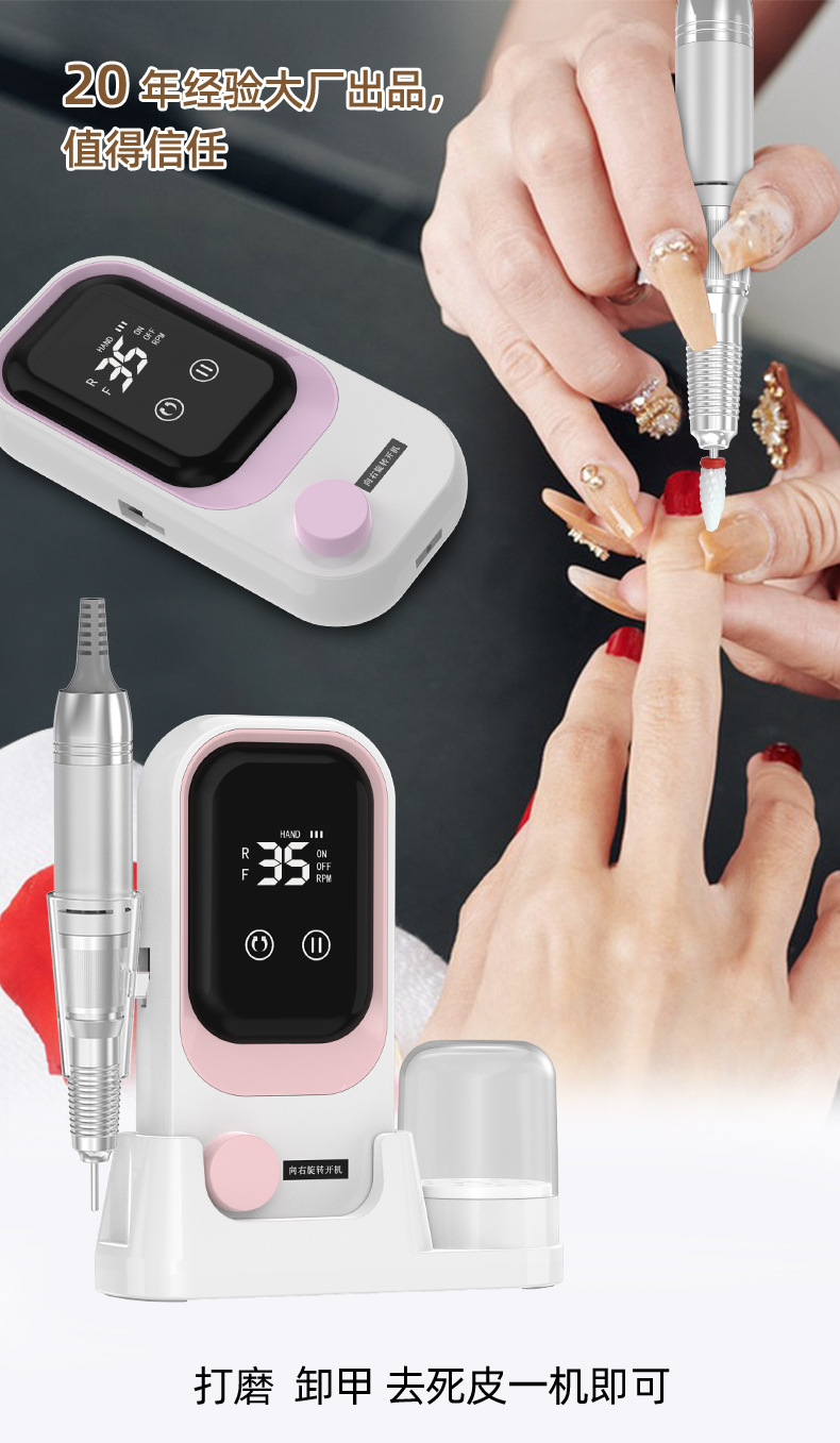 新款带底座收纳蓄电款指甲打磨机便携电动去死皮卸甲美甲打磨机