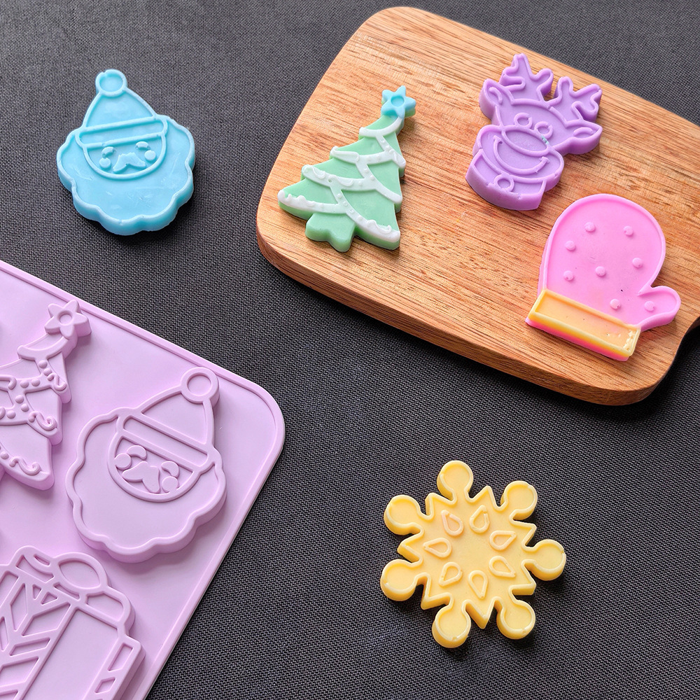 6连圣诞树雪花老人611硅胶模具糖果布丁模具蛋糕插件烘焙用具