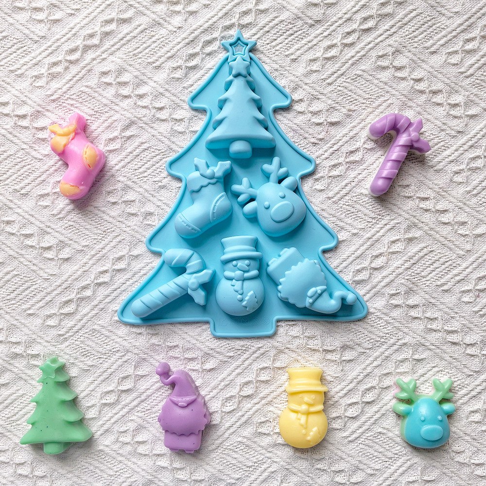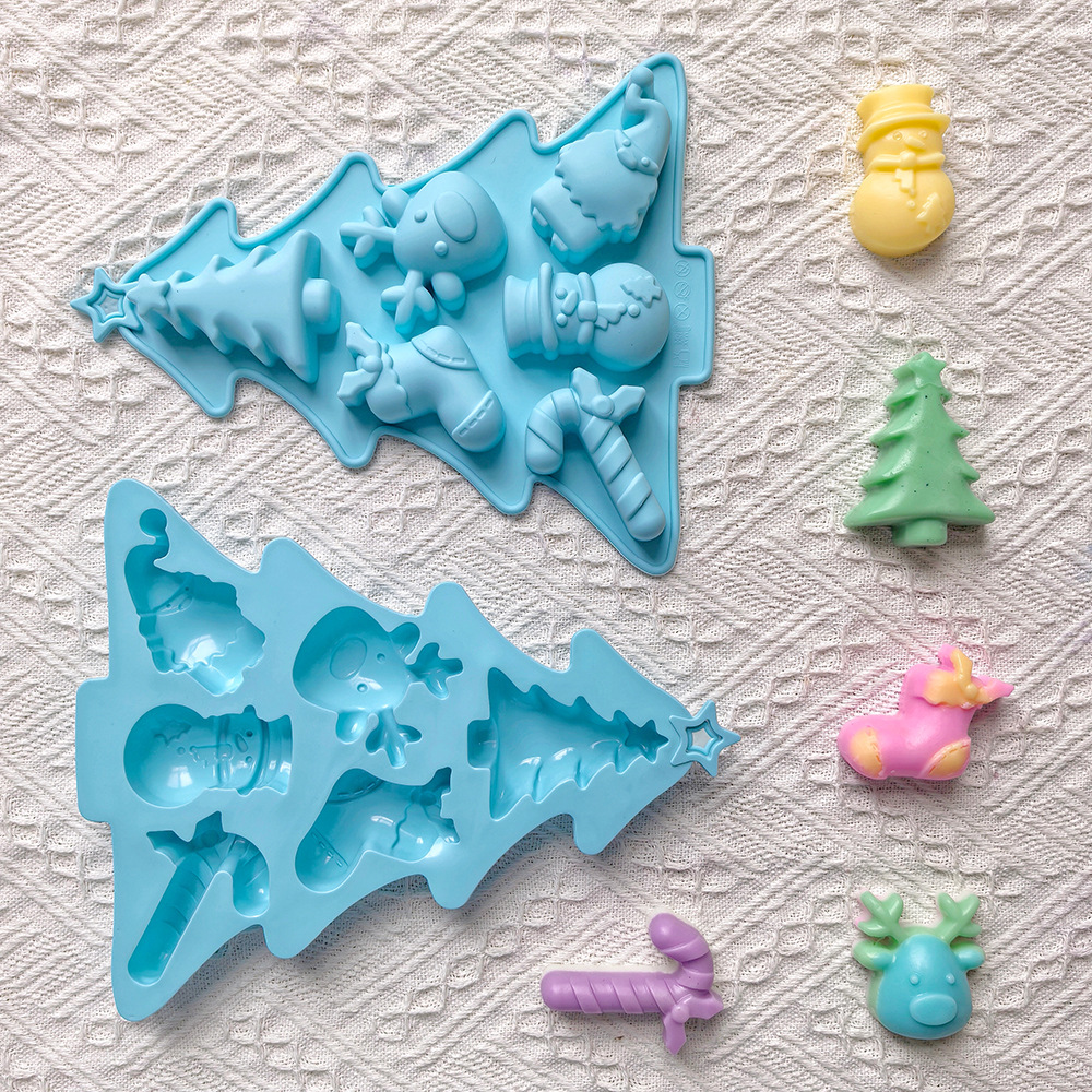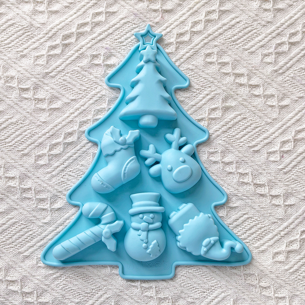 6连圣诞树巧克力607饼干硅胶模具糖果布丁甜点模具蛋糕烘焙用具