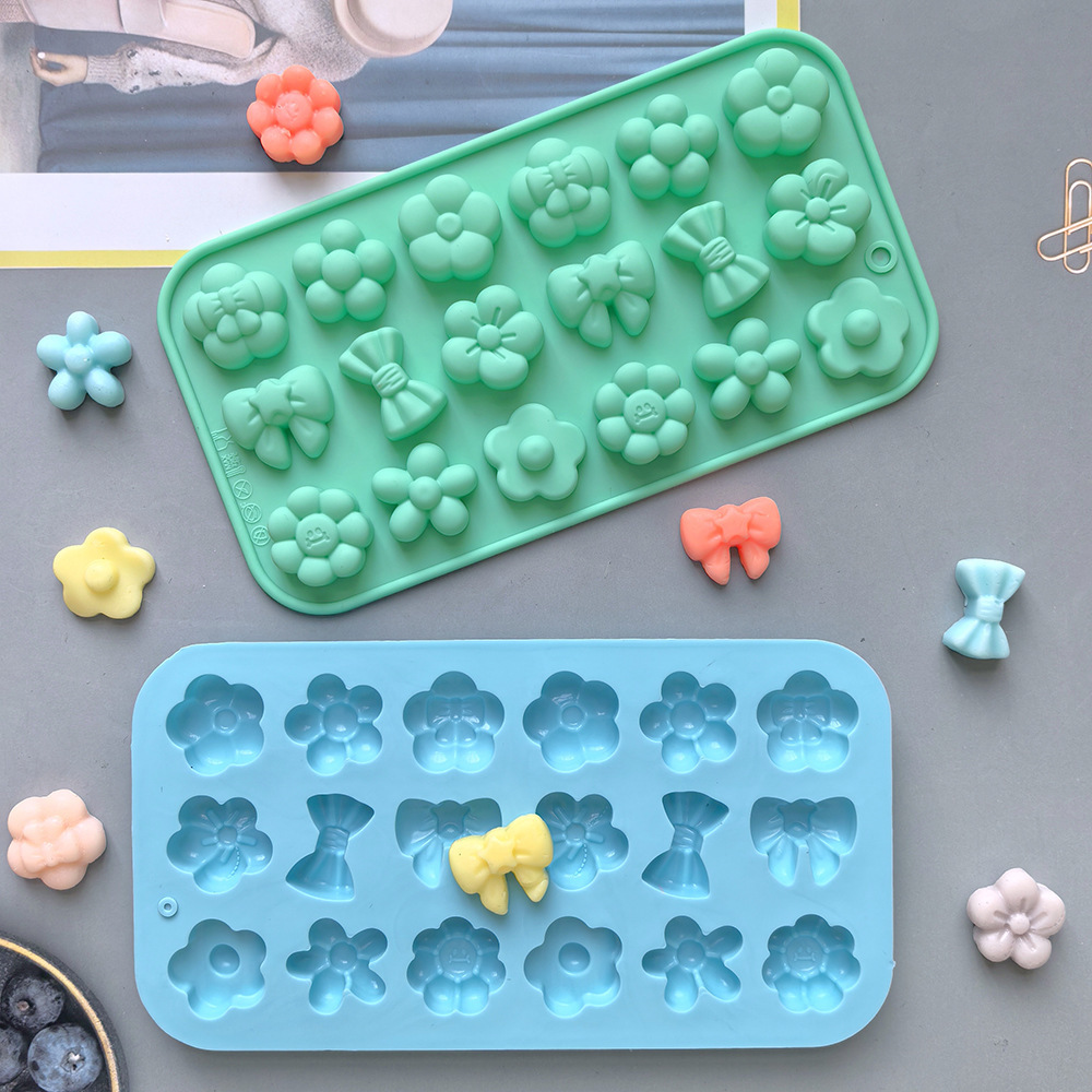 18连花朵蝴蝶结542硅胶模具DIY巧克力手工qq糖烘焙饼干烤盘