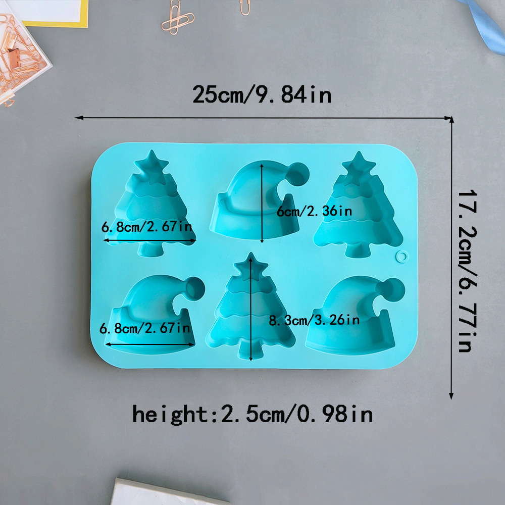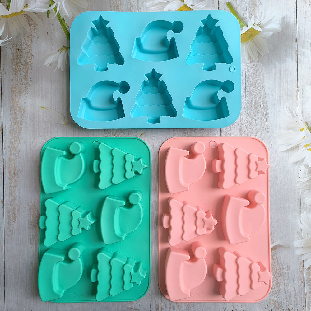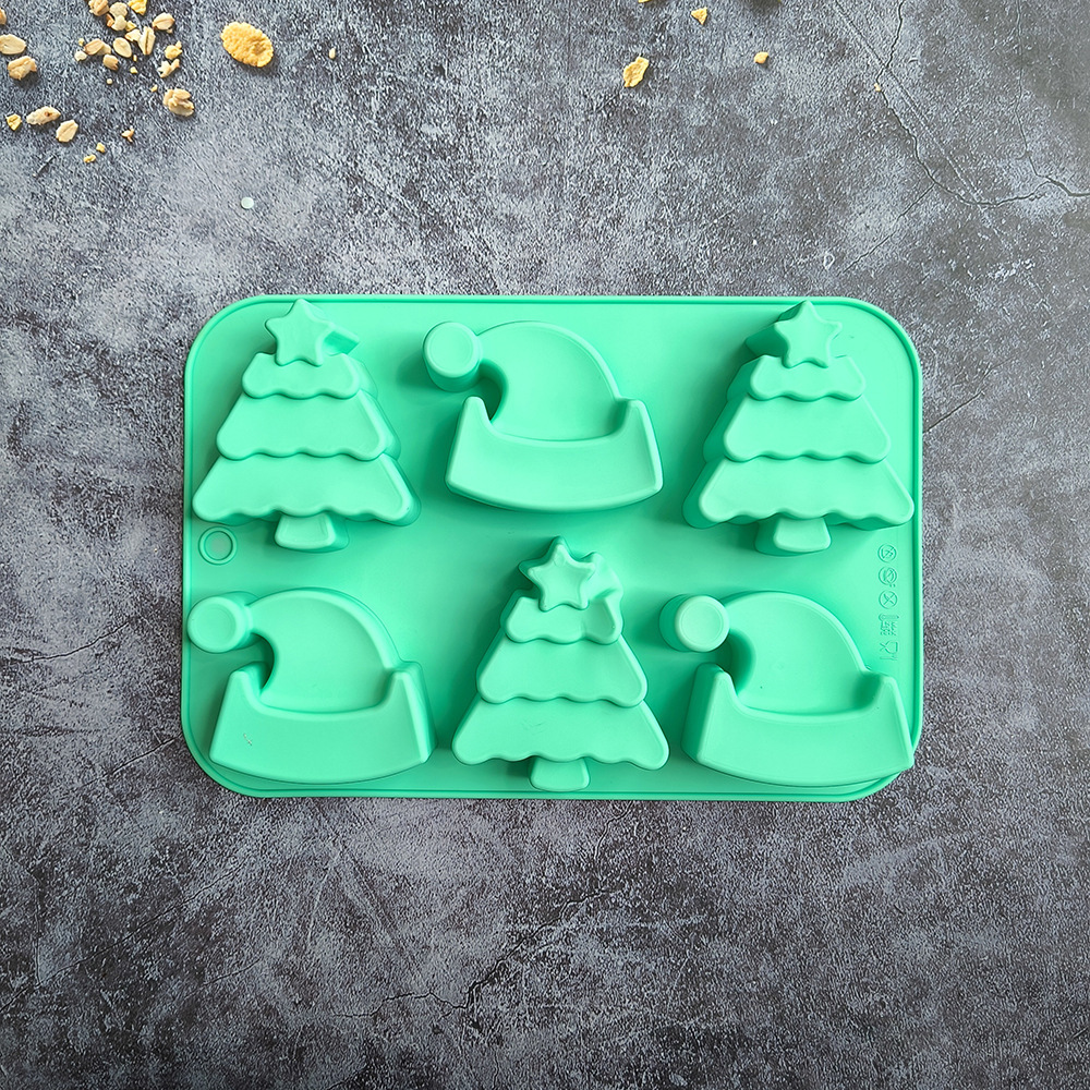 6连圣诞树帽子754蛋糕模具硅胶烤盘,3D圣诞帽形状饼干巧克力模具