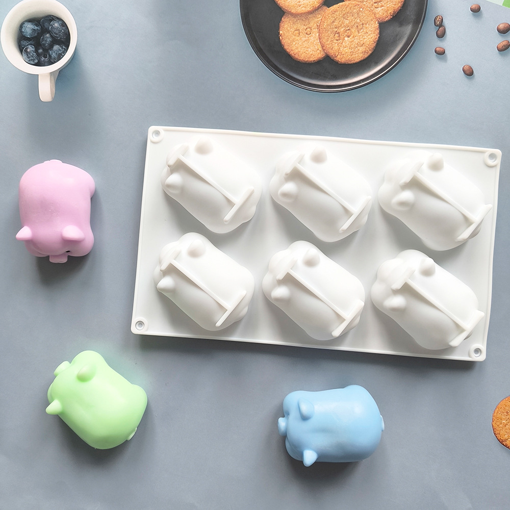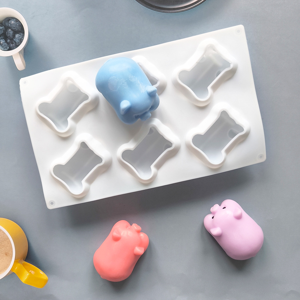 6连小金猪慕斯蛋糕硅胶模具3D肥皂烘焙模具