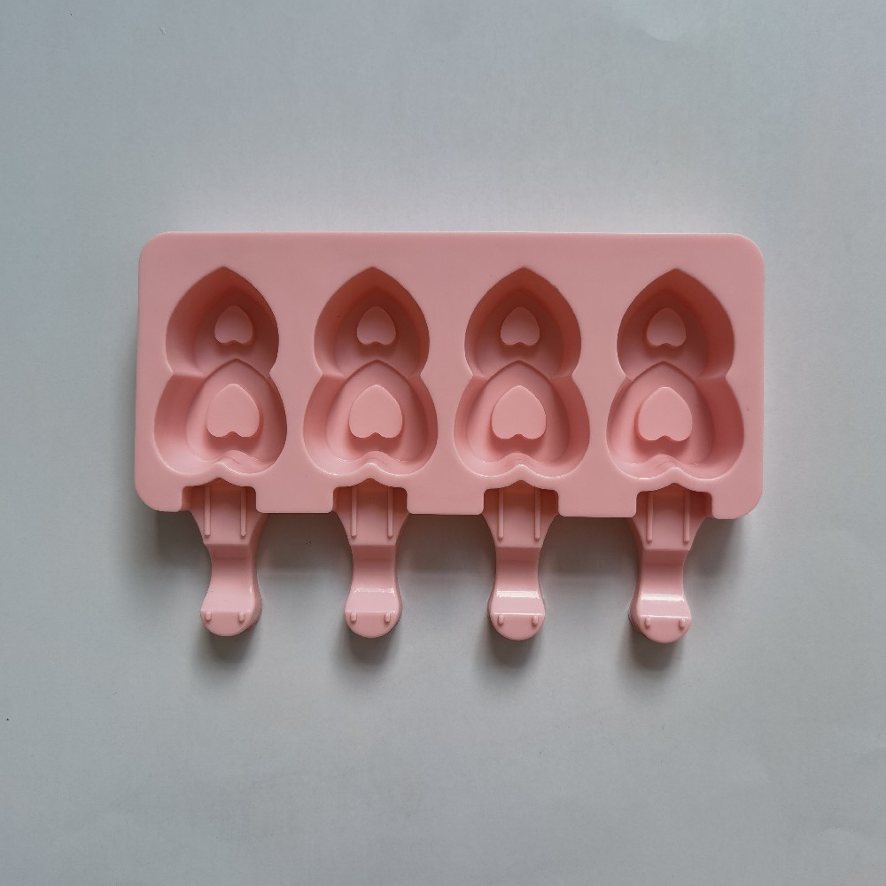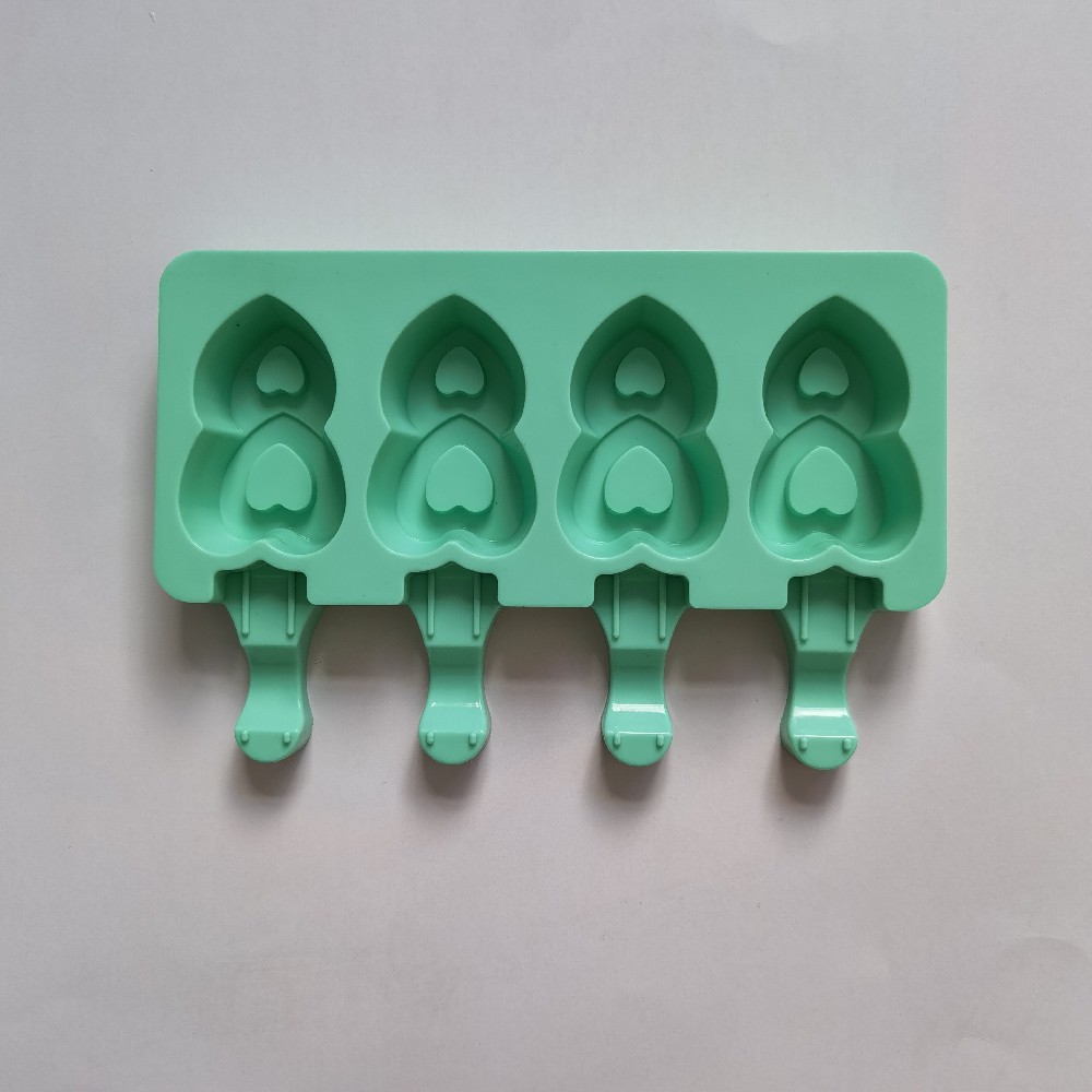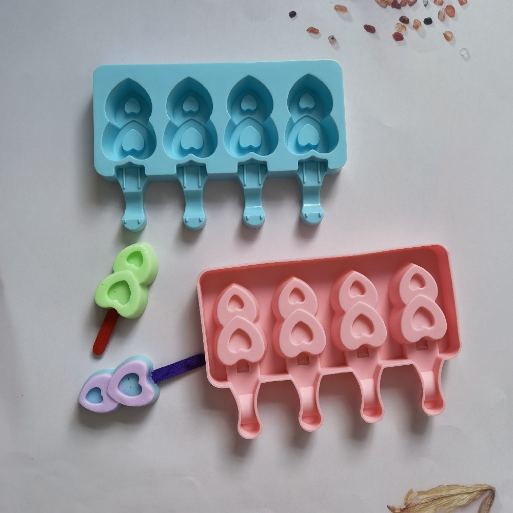 4连双爱心493冰淇淋硅胶模具甜点冰棍雪糕模具冰格夏季派对用品蓝