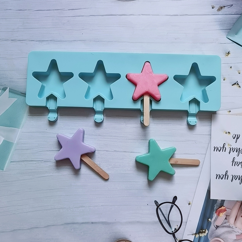 4连五角星雪糕157冰淇淋硅胶模具蛋糕糖果布丁烘焙模具