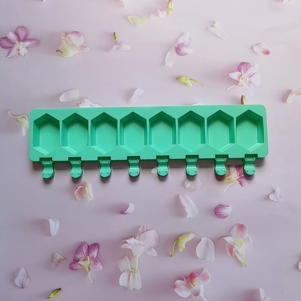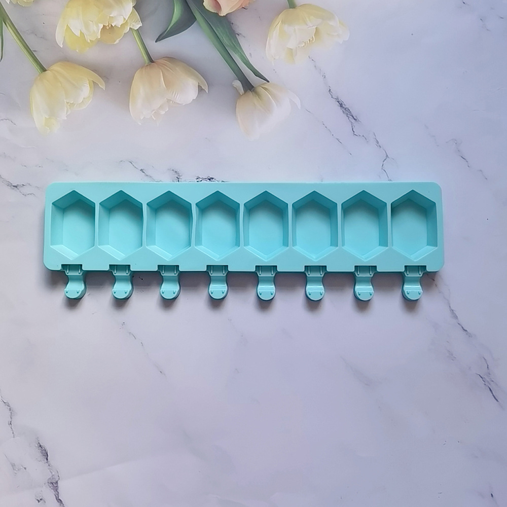 8连6边宝石雪糕101硅胶模具蛋糕布丁甜点模具肥皂烘焙用具蓝