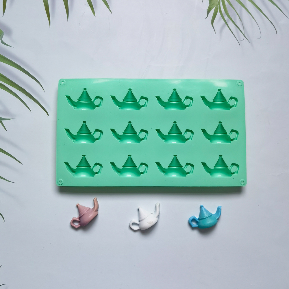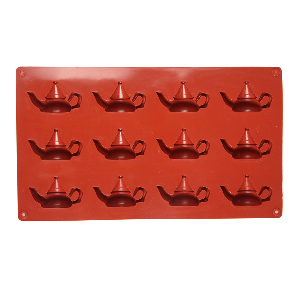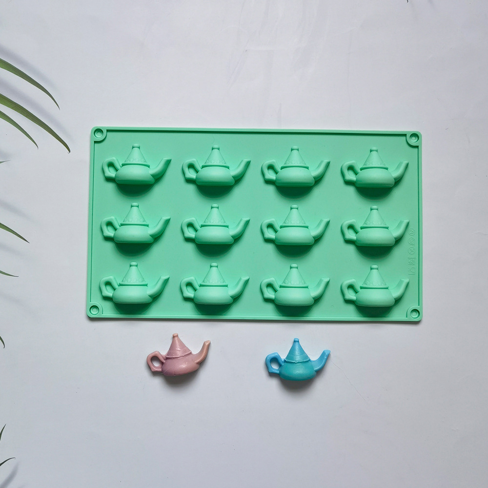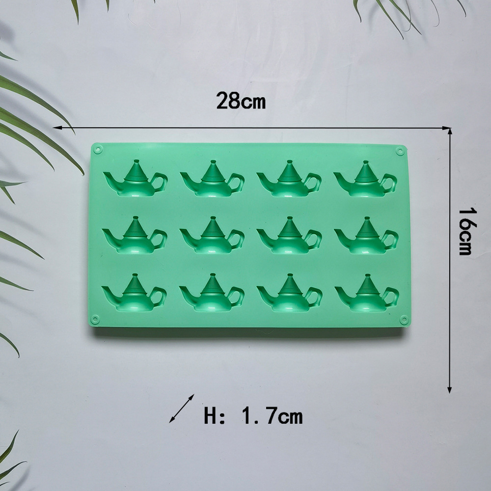 12连茶壶53巧克力蛋糕硅胶模具糖果甜点模具厨房烘焙用具马绿
