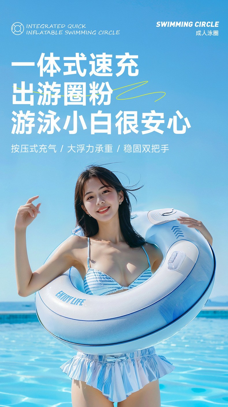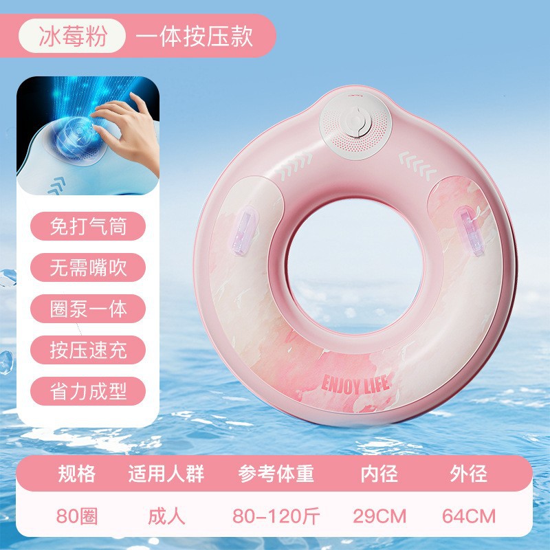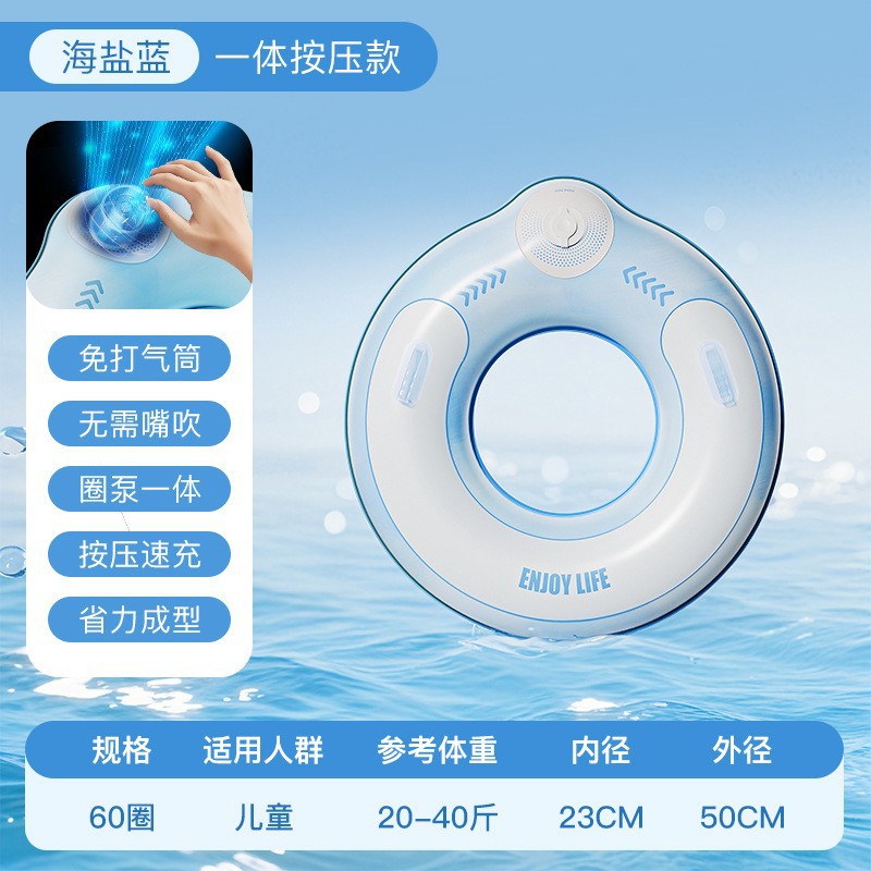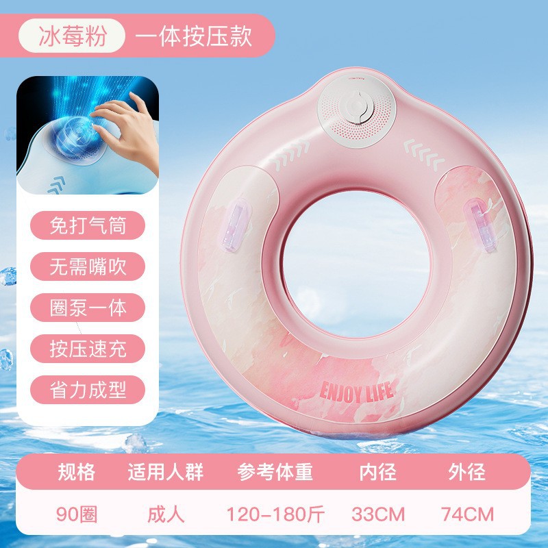 嘉述儿童充气游泳圈双层pvc成人款加厚大人带把手运动户外救生圈