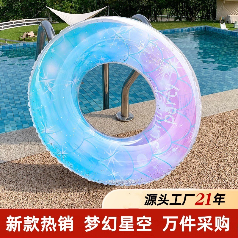 加厚儿童卡通充气双层游泳圈50-90水晶游泳圈水上双气囊游泳圈