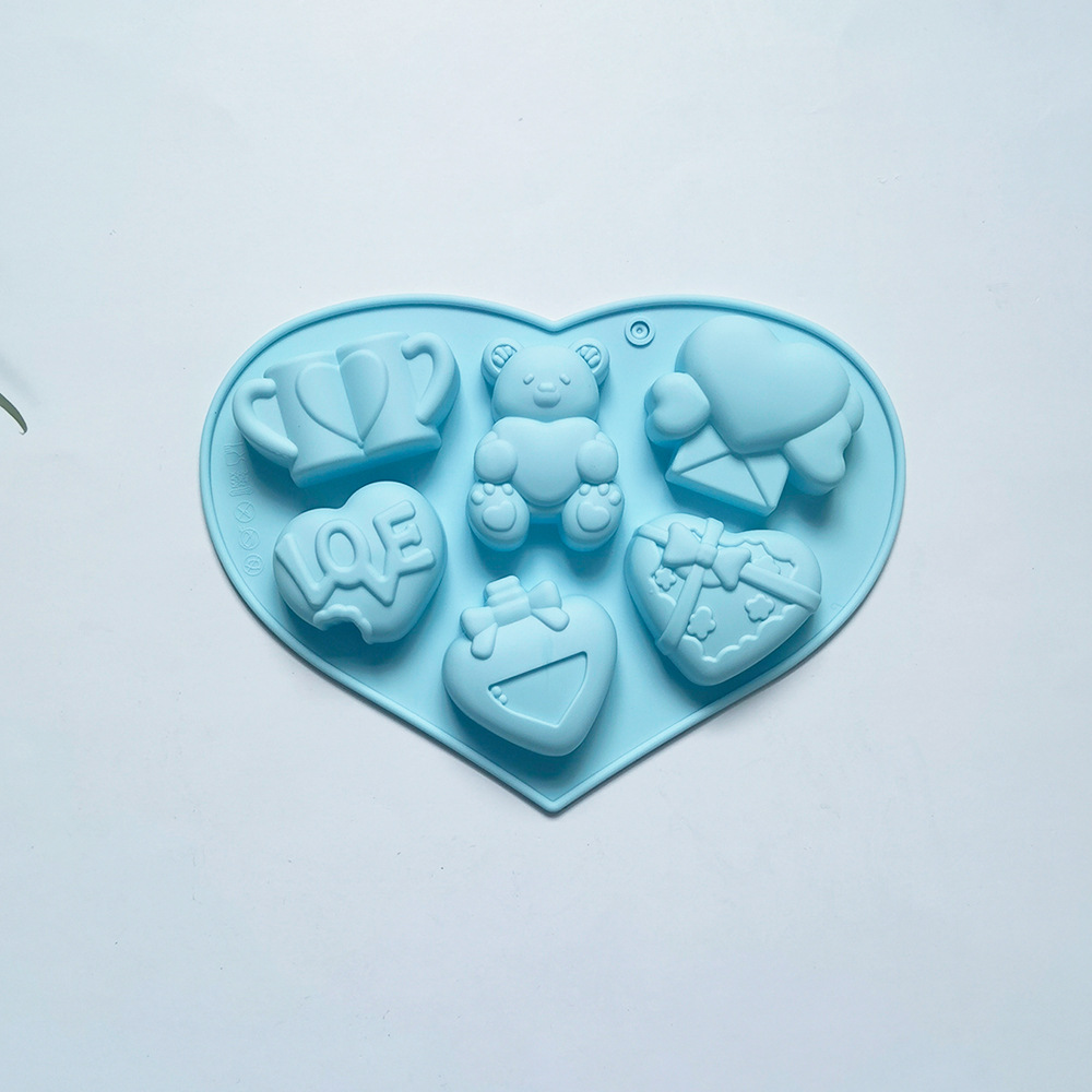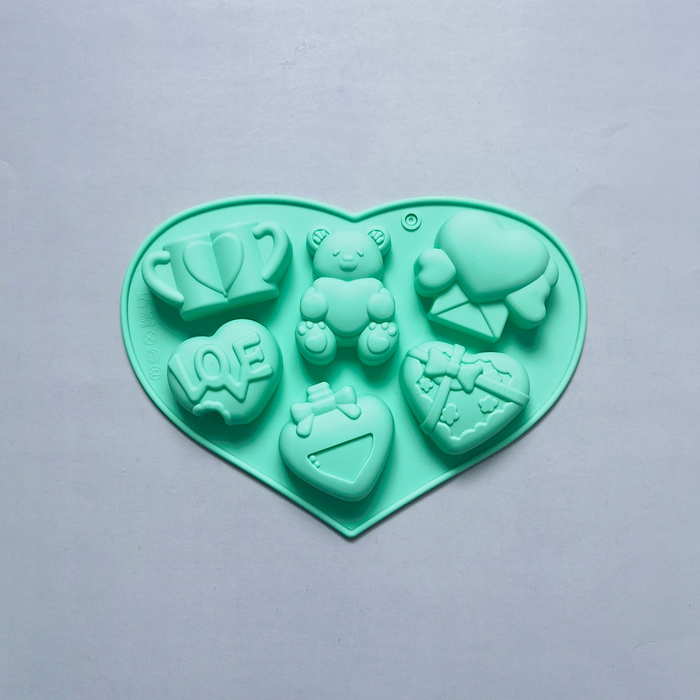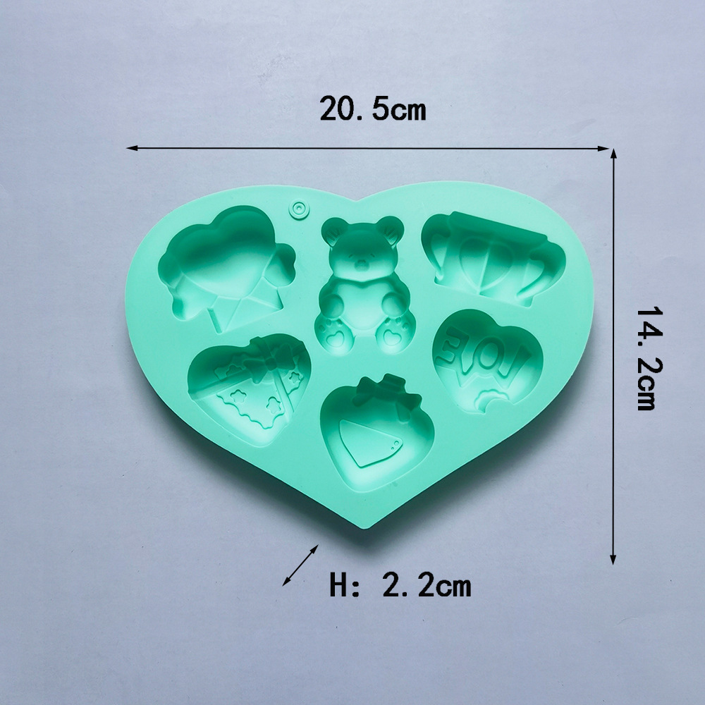 6连爱心熊530蛋糕硅胶模具慕斯糕点果冻蛋挞烘焙模具马绿