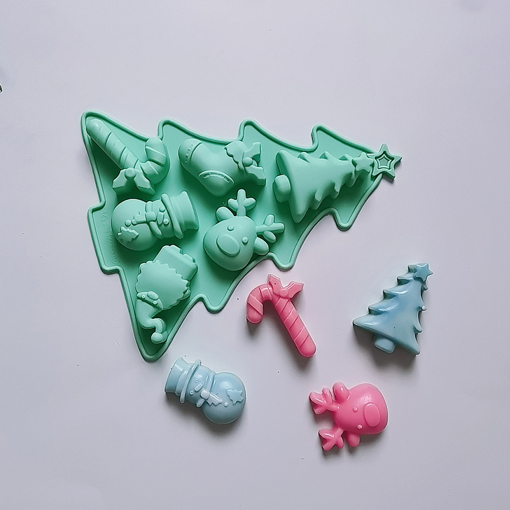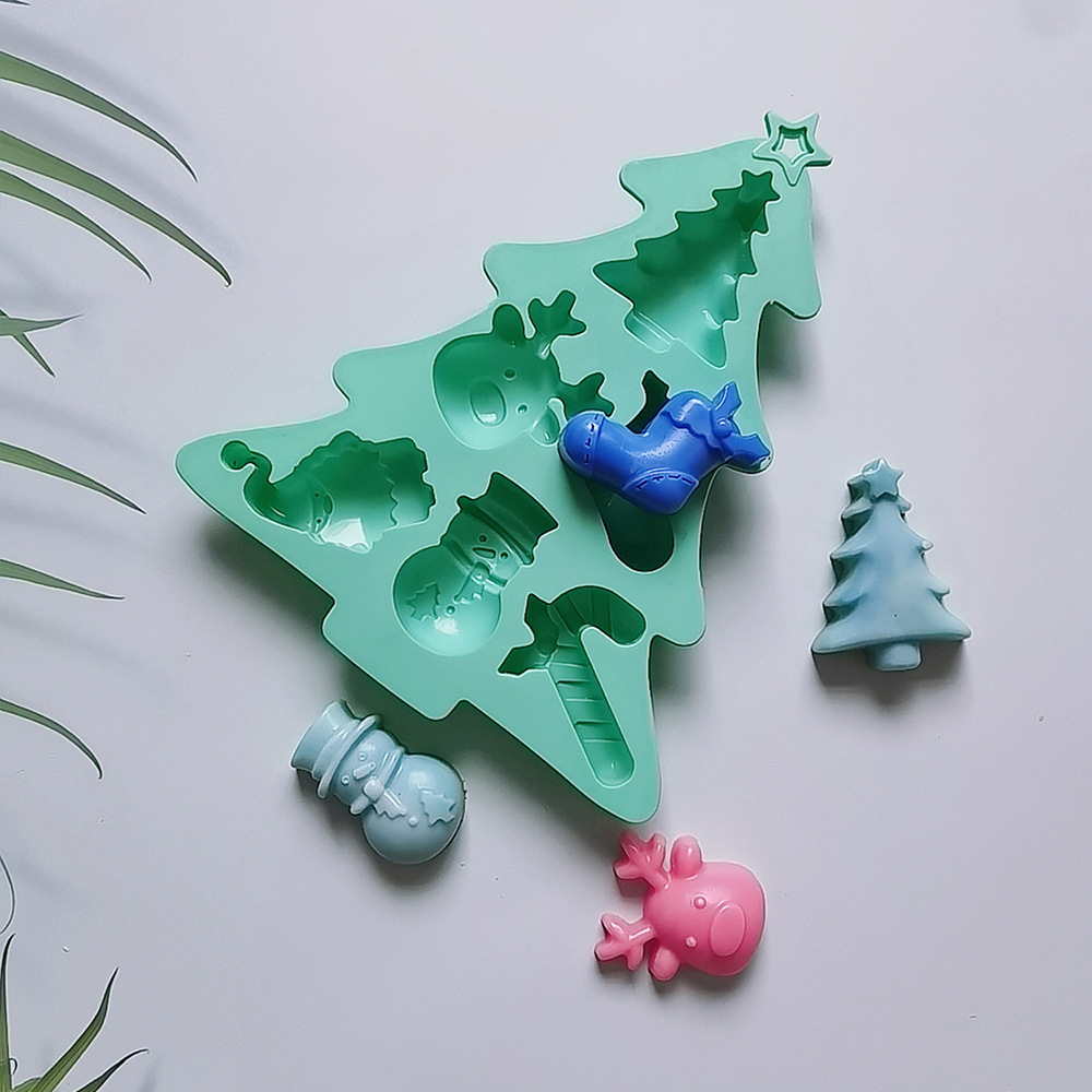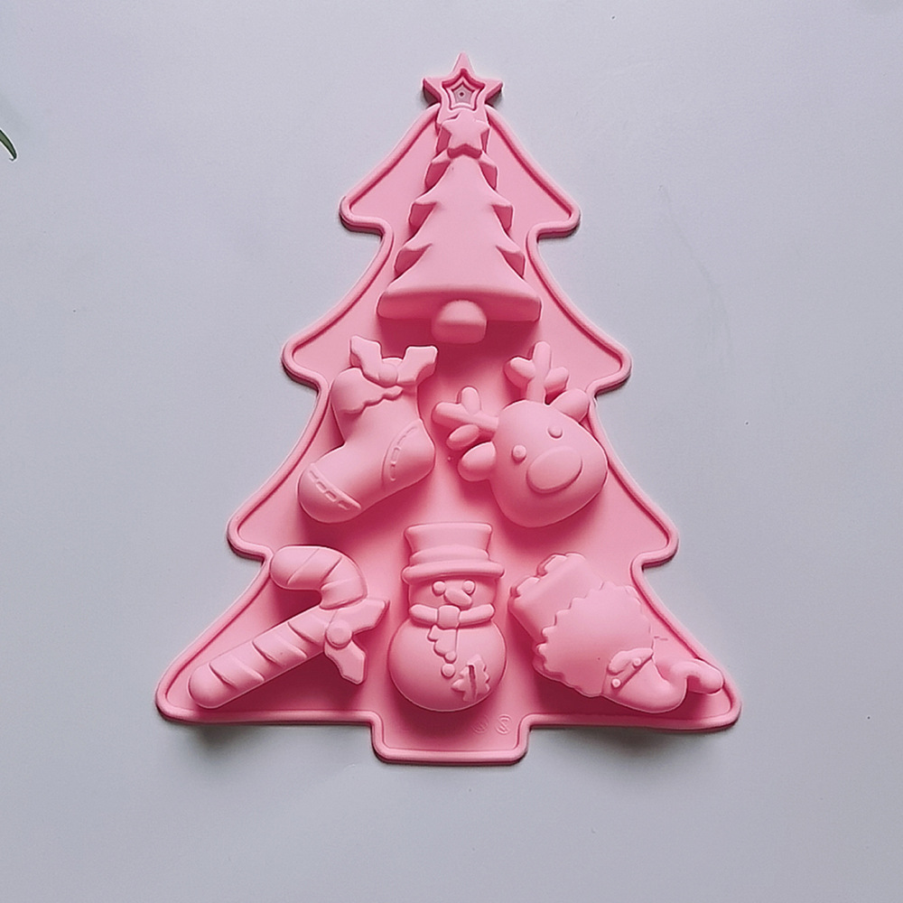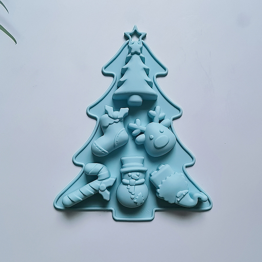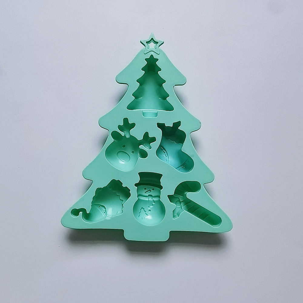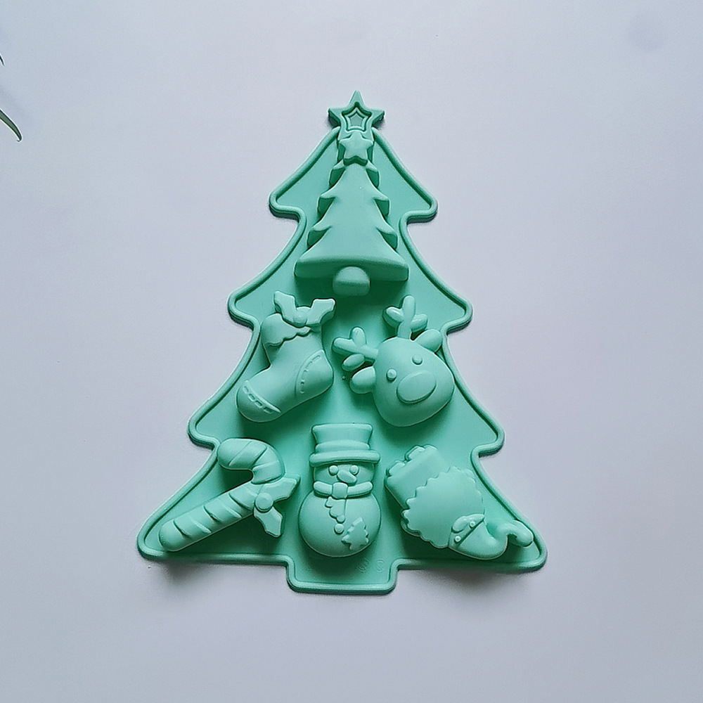 6连圣诞树607巧克力硅胶模具糖果布丁模具蛋糕插件烘焙用具马绿