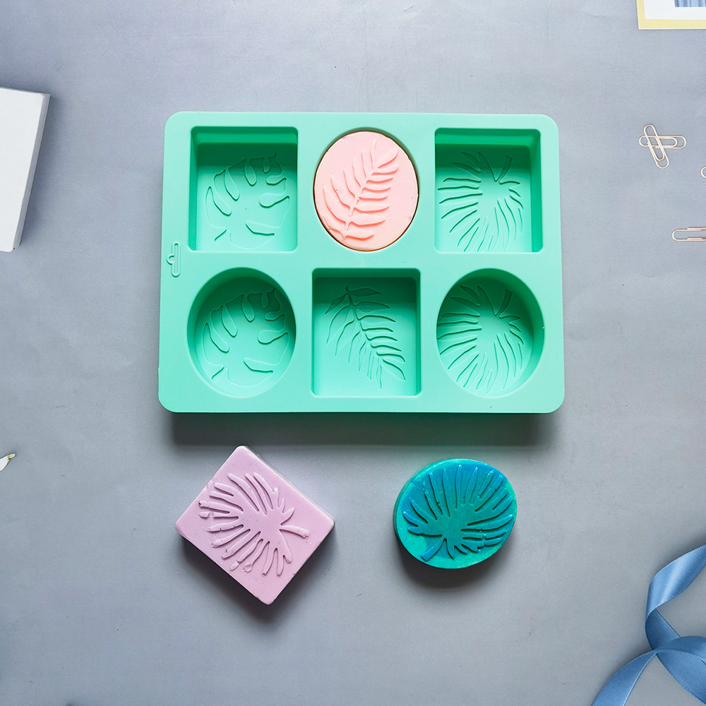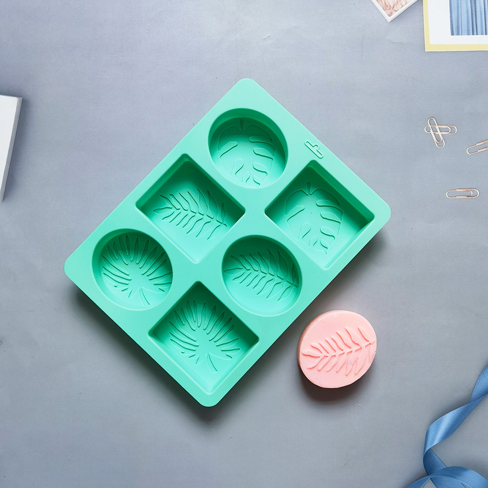 6连方形椭圆树叶604硅胶模具糖果布丁模具蛋糕插件烘焙用具马绿