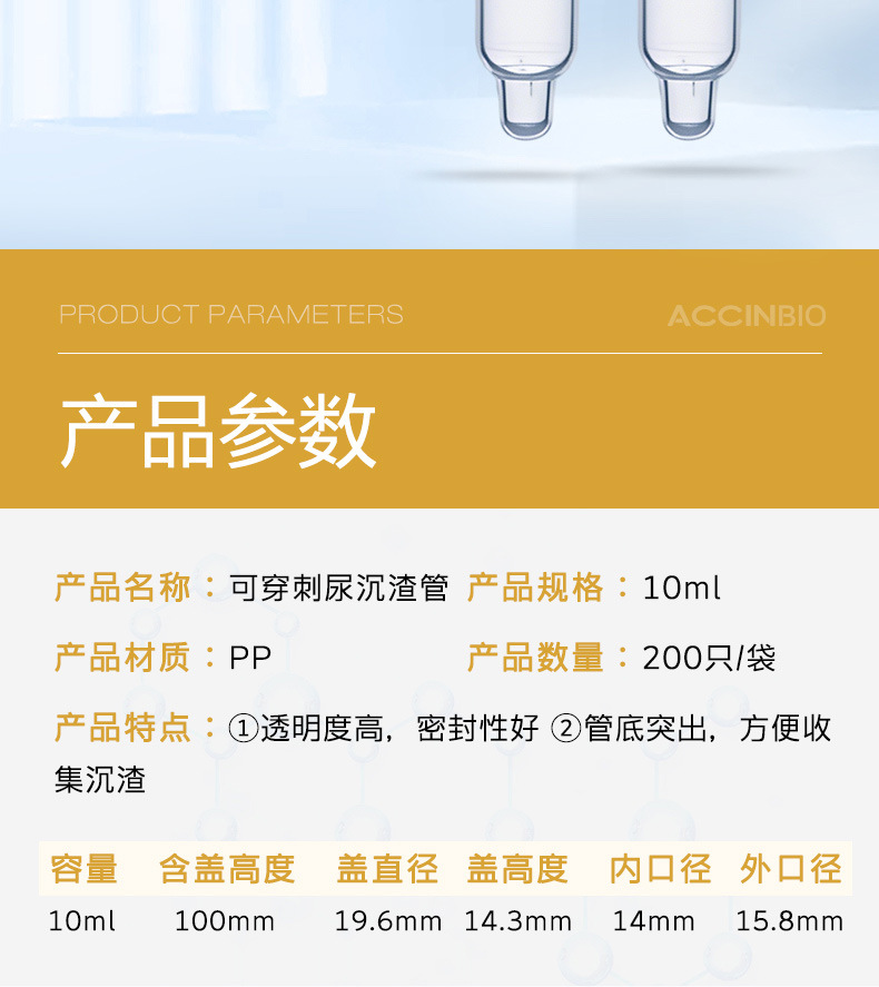 专供出口一次性使用实验室试管硅胶盖PP塑料可穿刺尿沉渣管