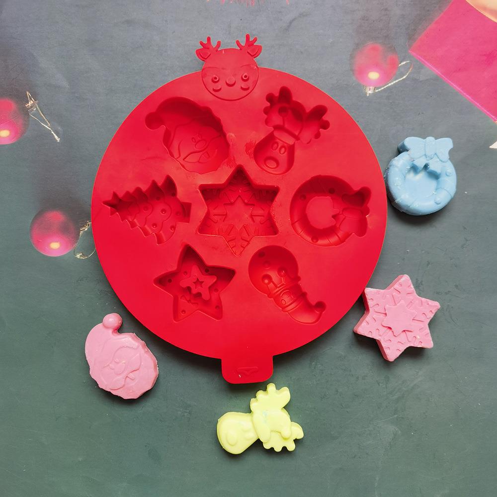 圆形7连圣诞77巧克力饼干模蛋糕模具雪糕糖果硅胶模具