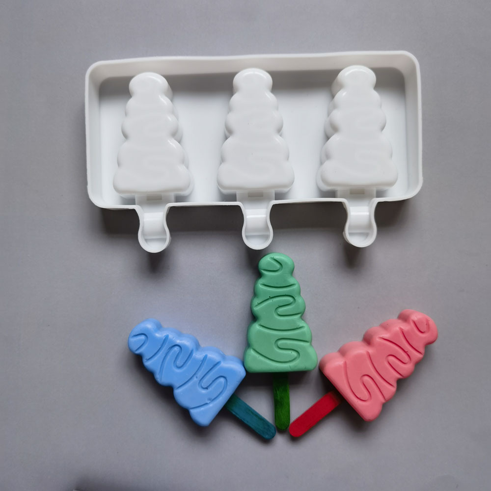 硅胶3连圣诞树雪糕冰淇淋模具冰块DIY布丁蛋糕配件烘焙工具285