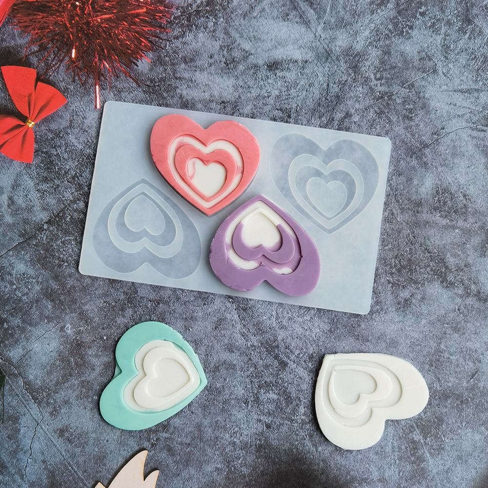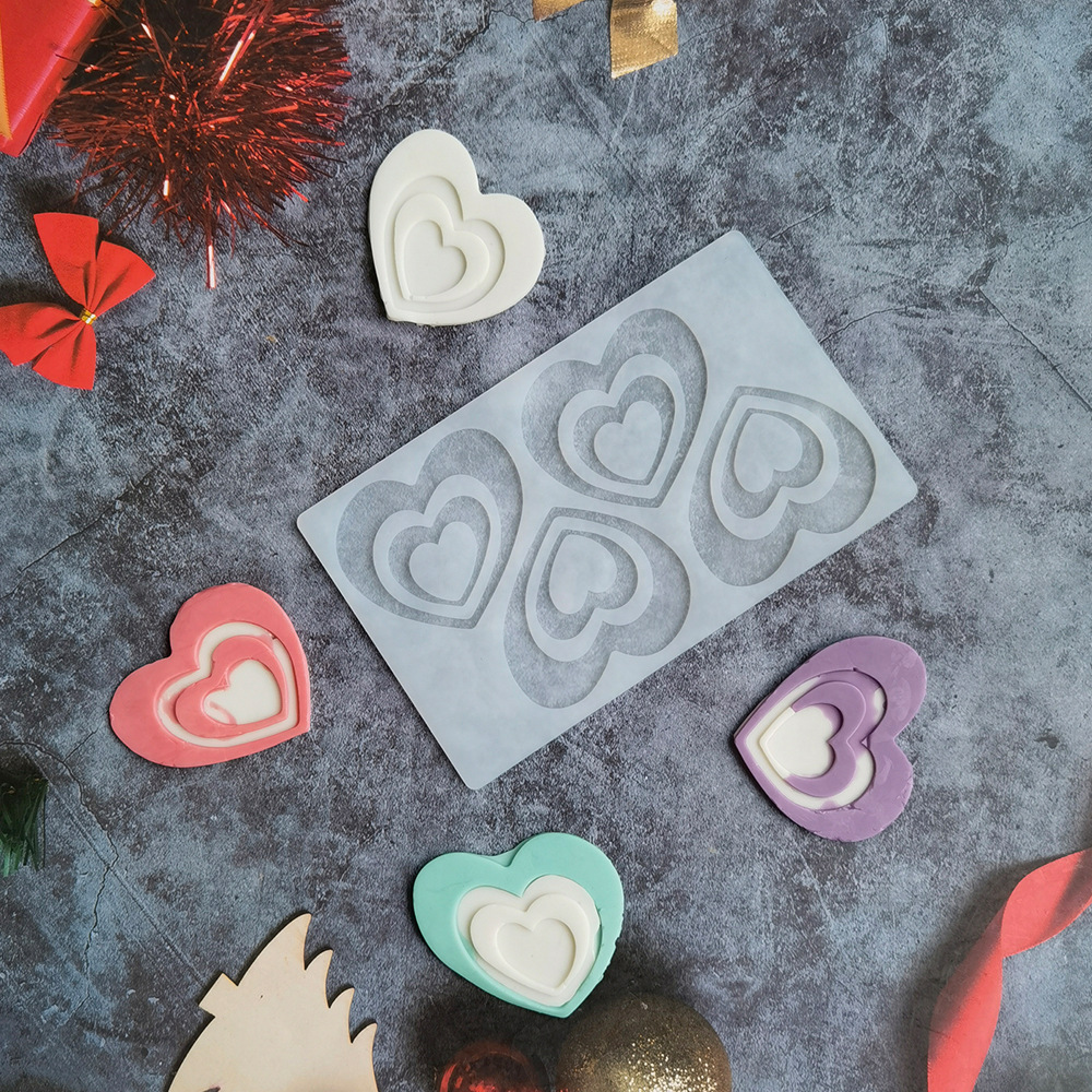 4连镂空双爱心插件硅胶蛋糕模具巧克力甜点布丁烘焙模具SS17442