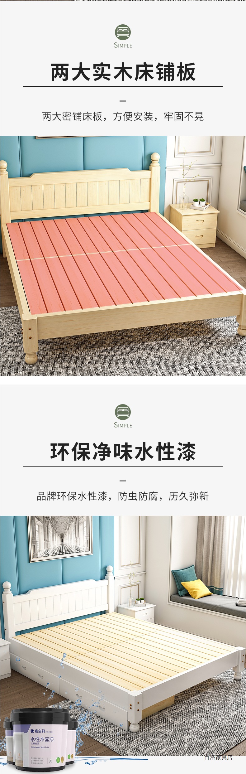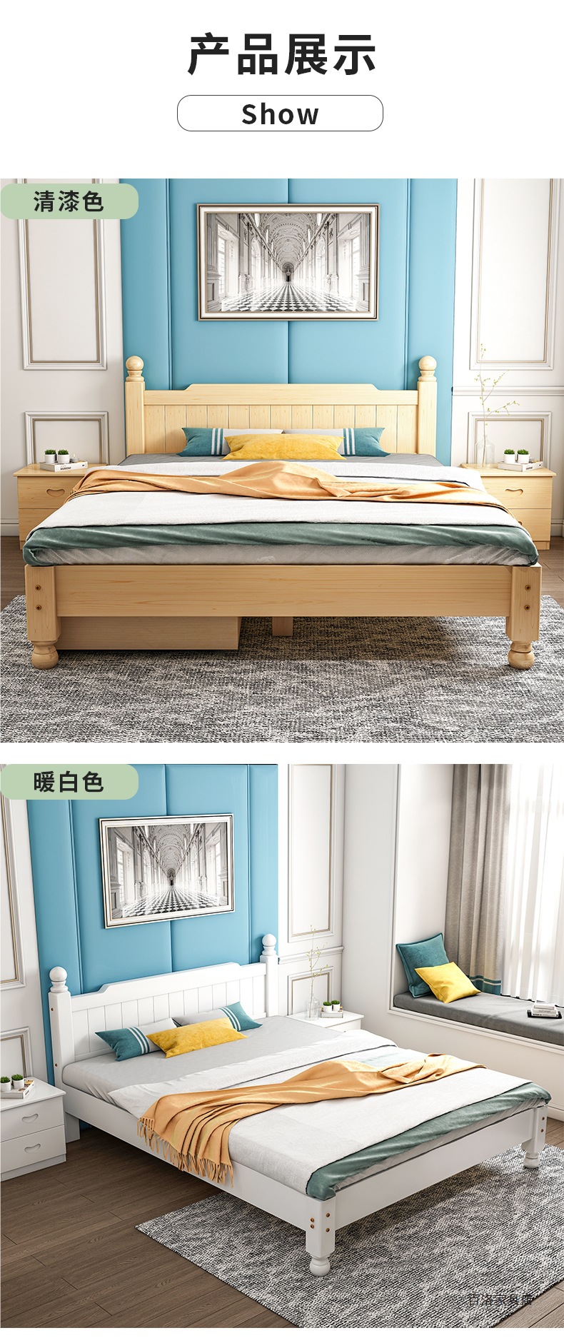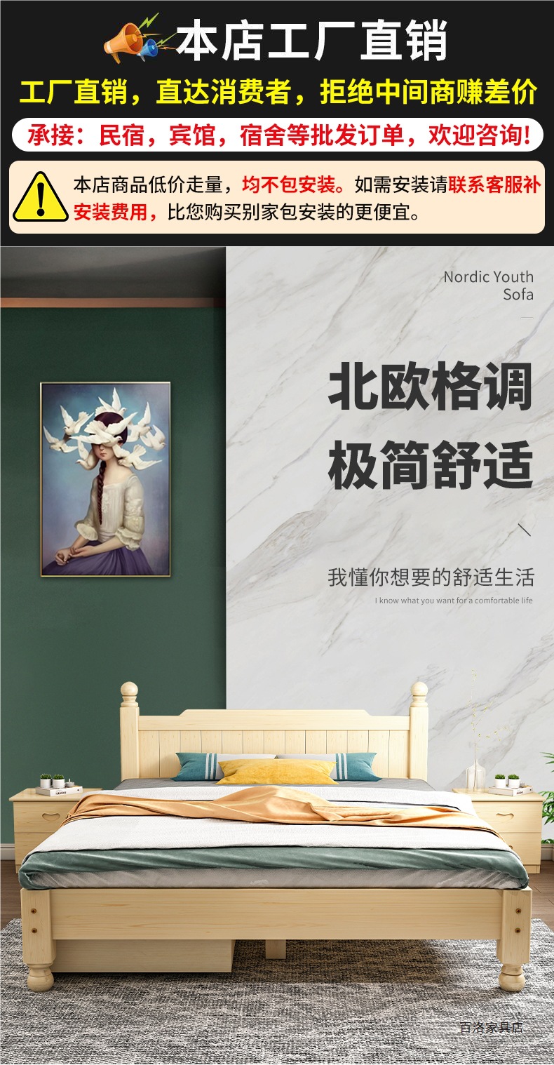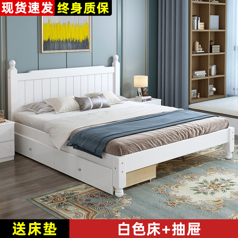 实木床白色现代简约1.5米双人主卧1.8米单人1.2米家用简易出租房
