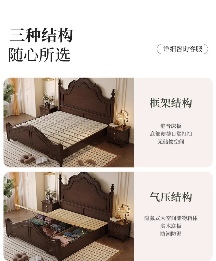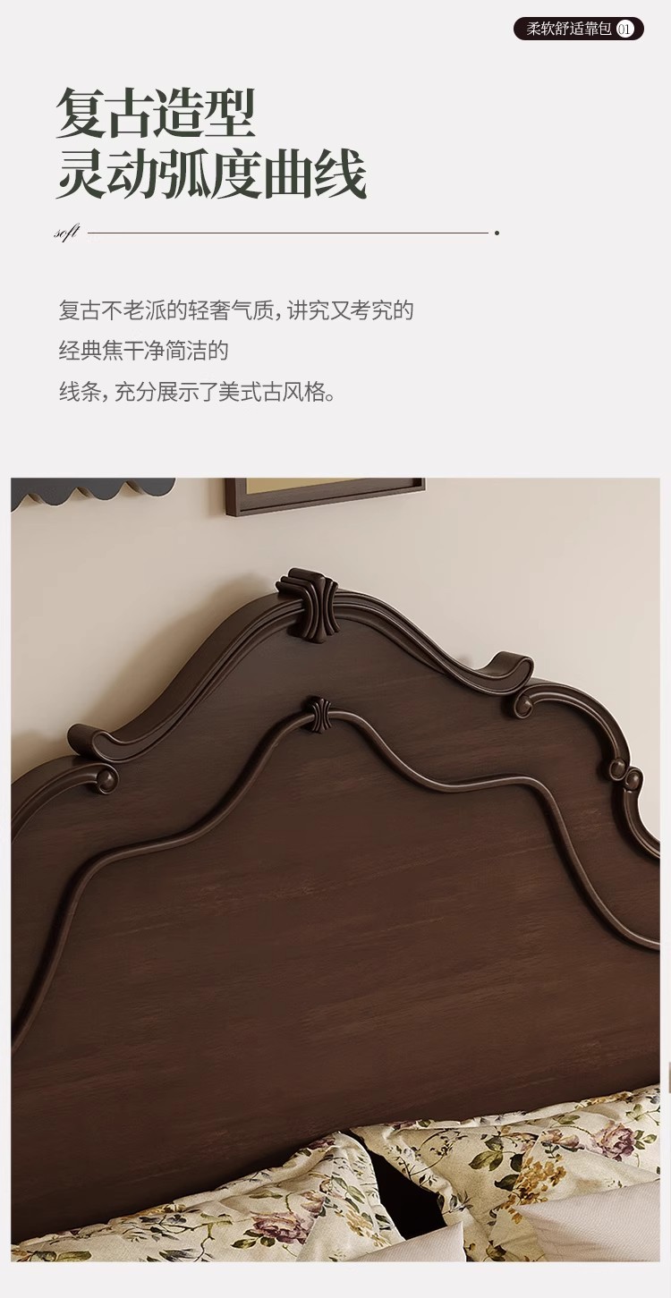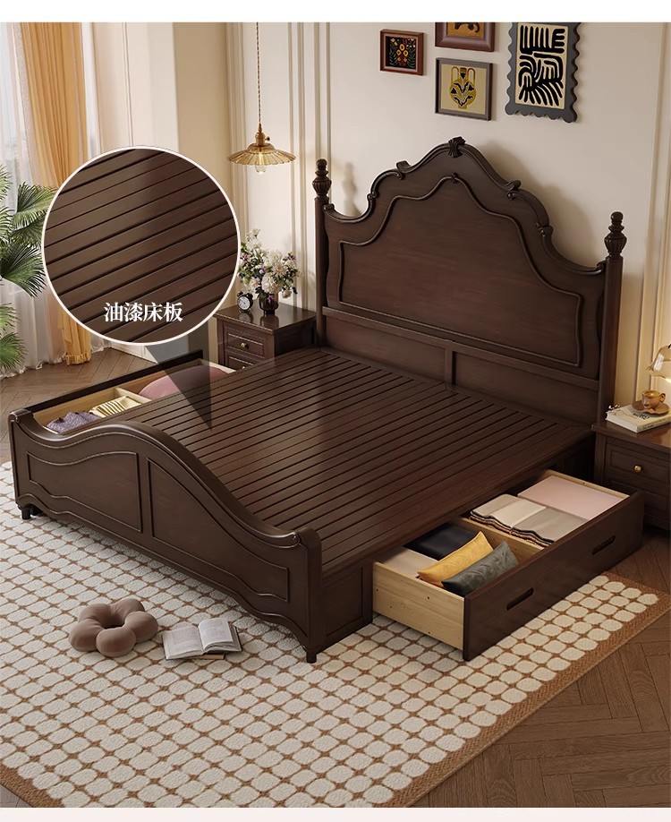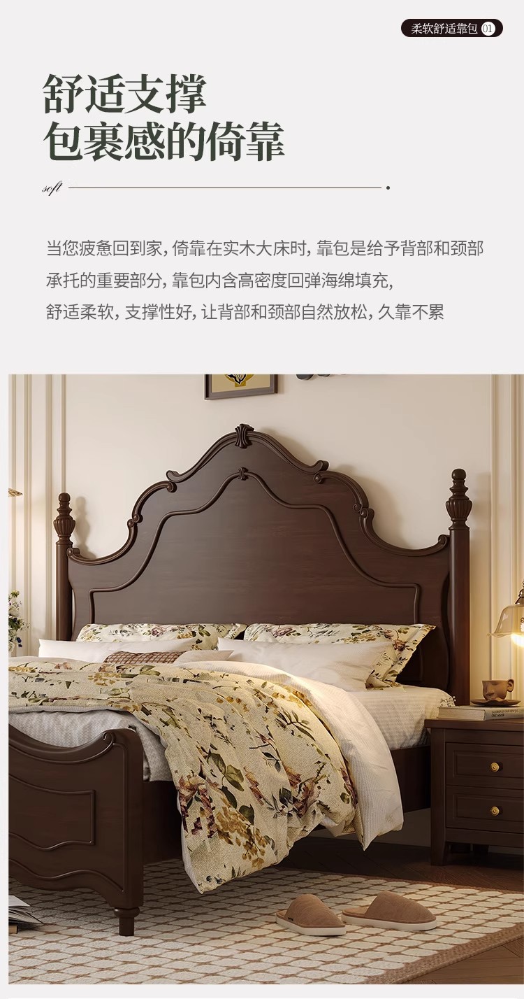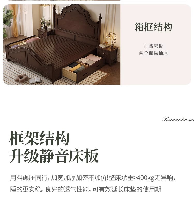 简美风美式实木床现代简约1.8米法式复古大床1.5米轻奢主卧双人床