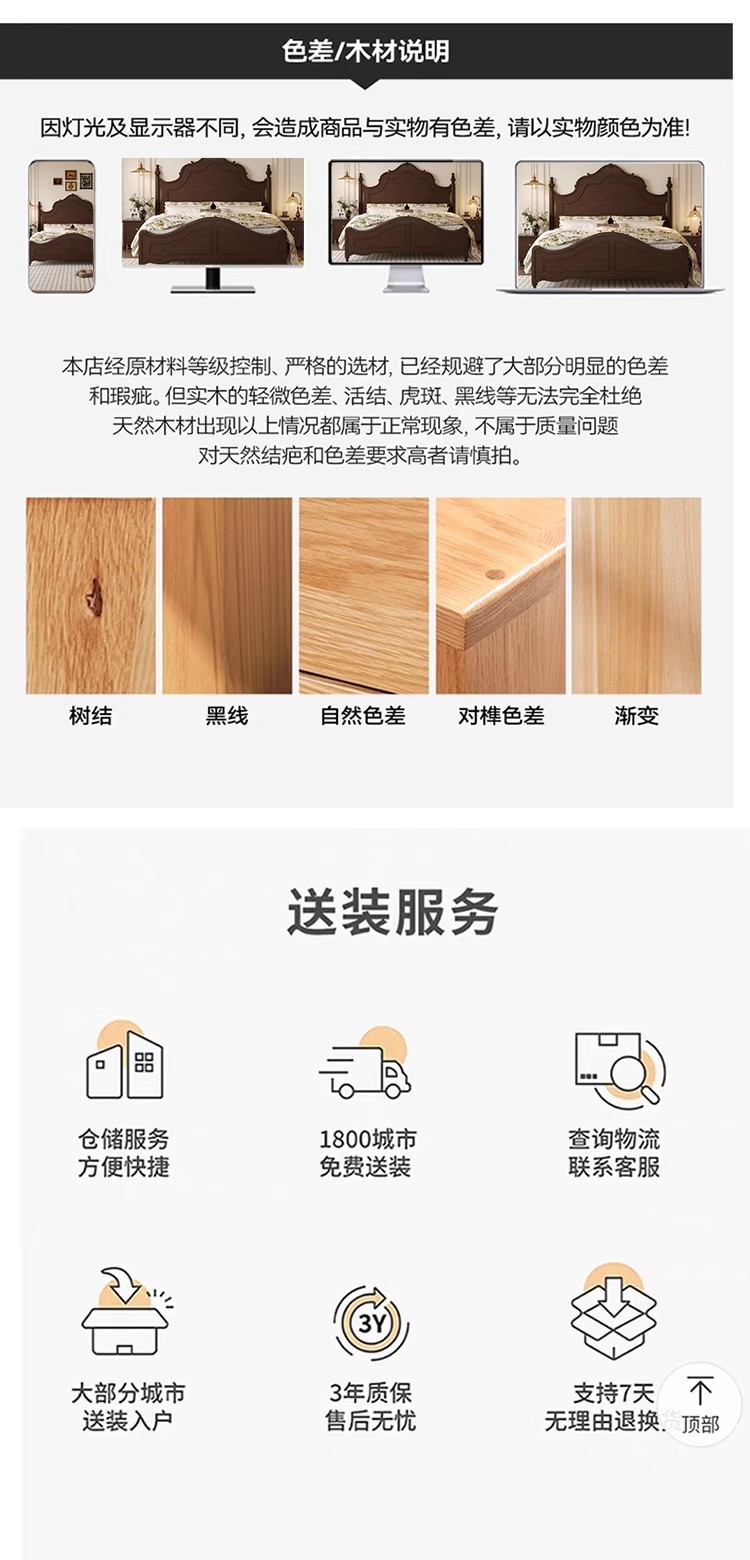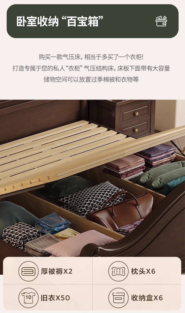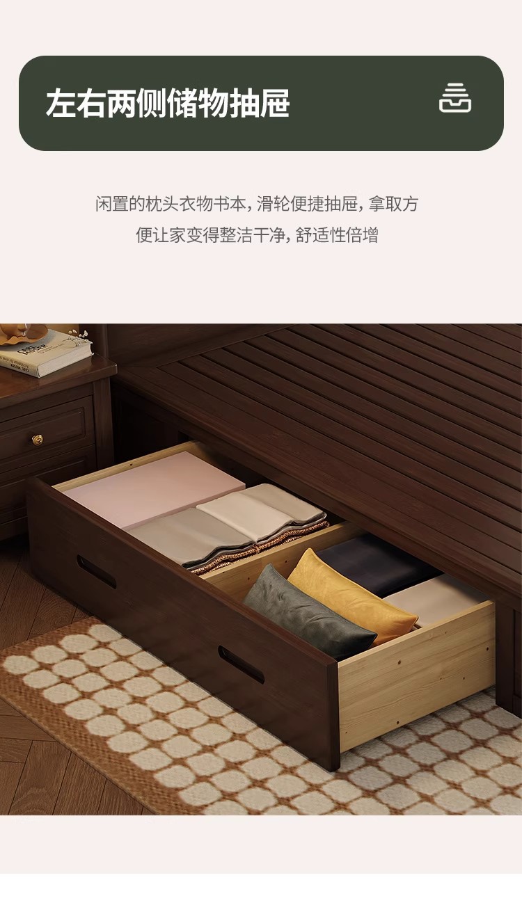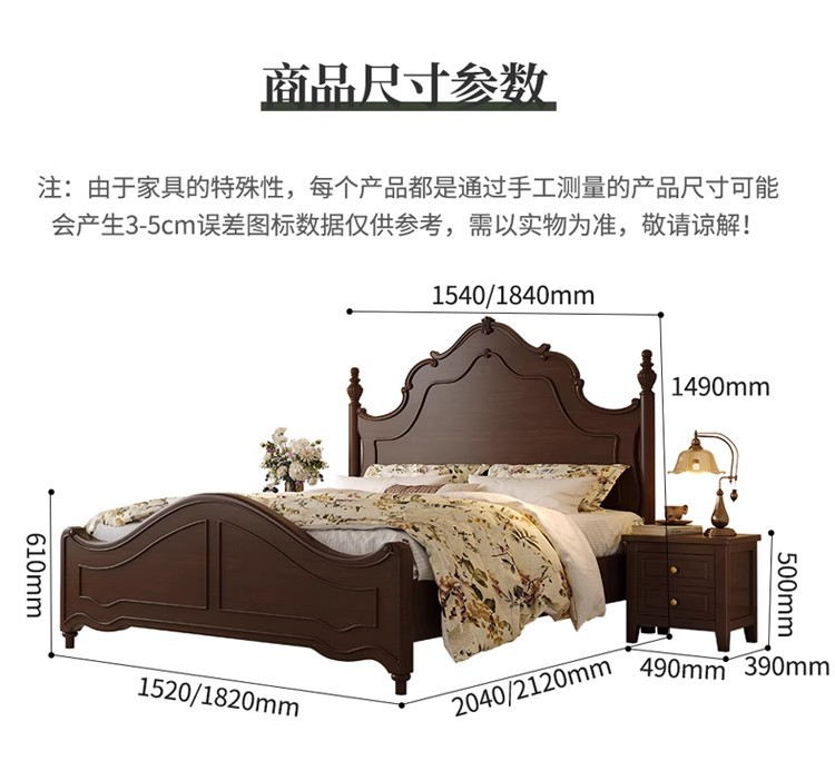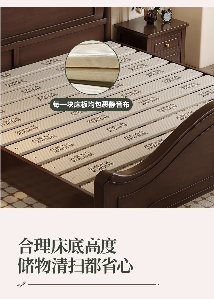 简美风美式实木床现代简约1.8米法式复古大床1.5米轻奢主卧双人床