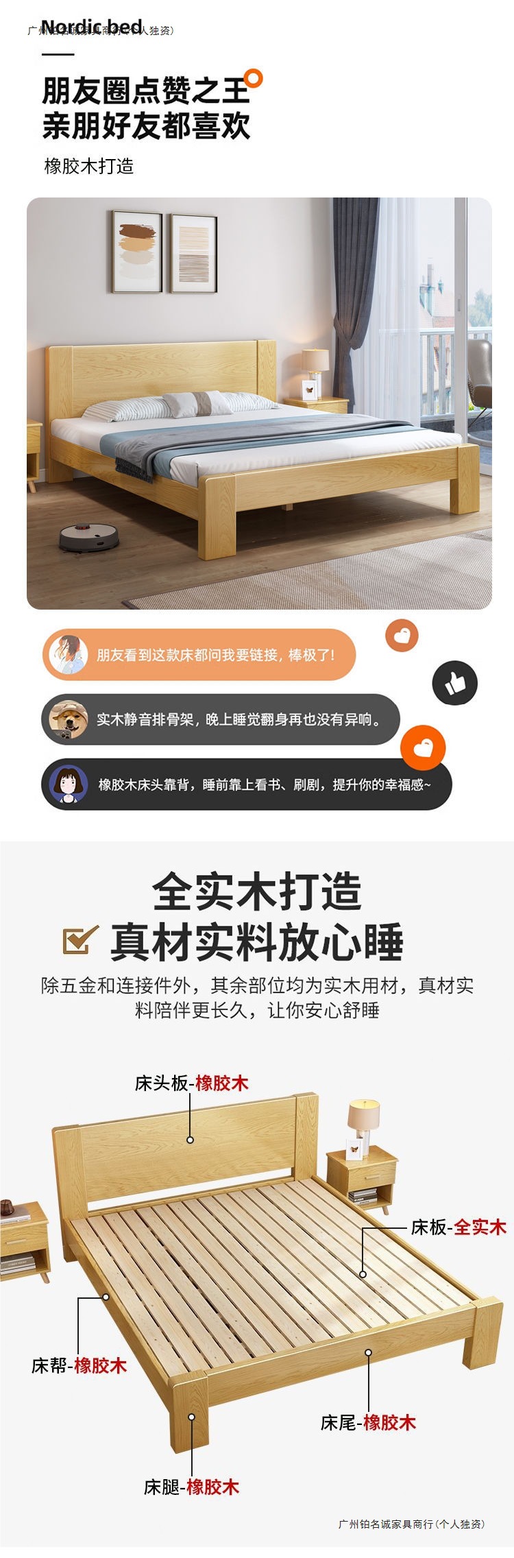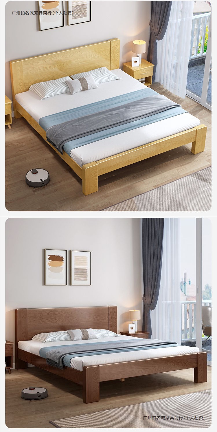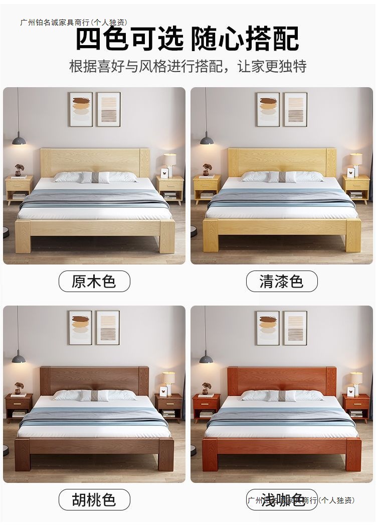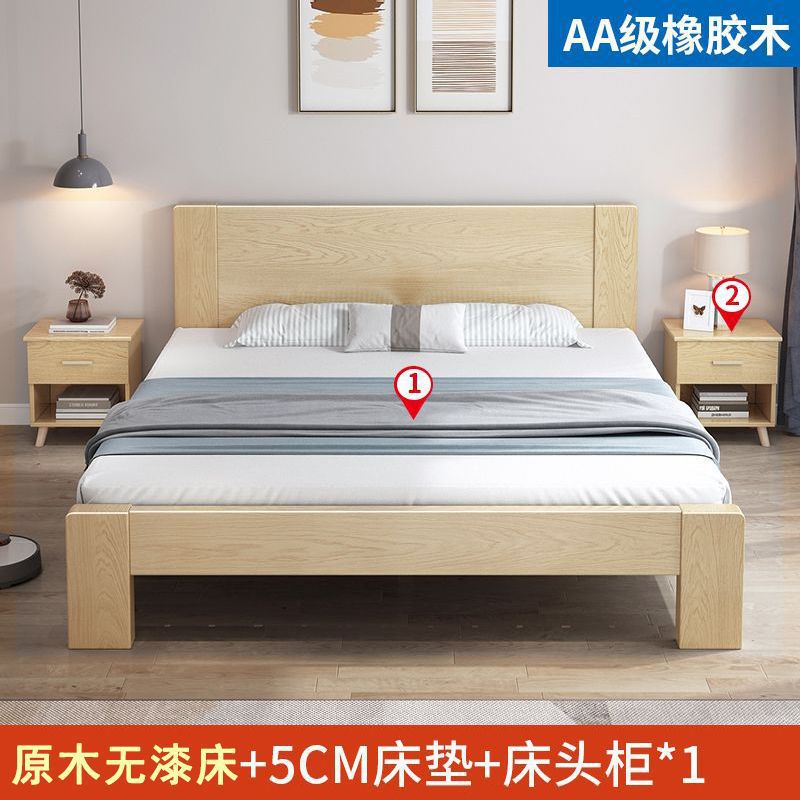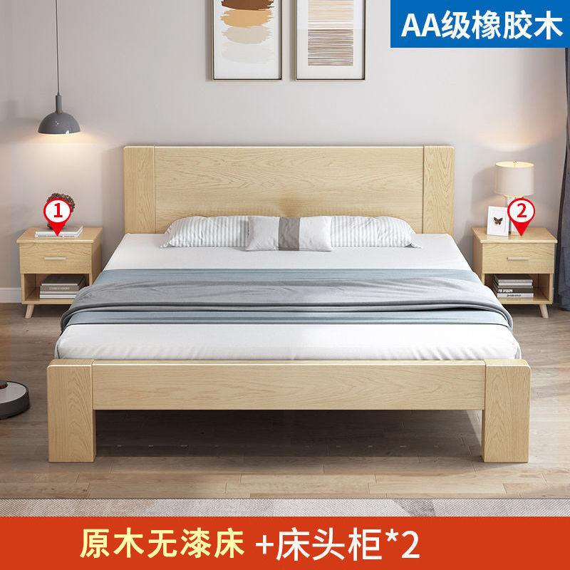 实木床橡胶木床双人1.8x2米主卧单人床便宜经济型床1.5米家用1.2m