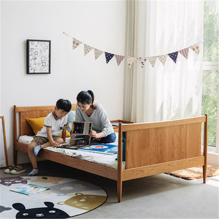 二黑木业可可床 北欧日式樱桃木实木床儿童床