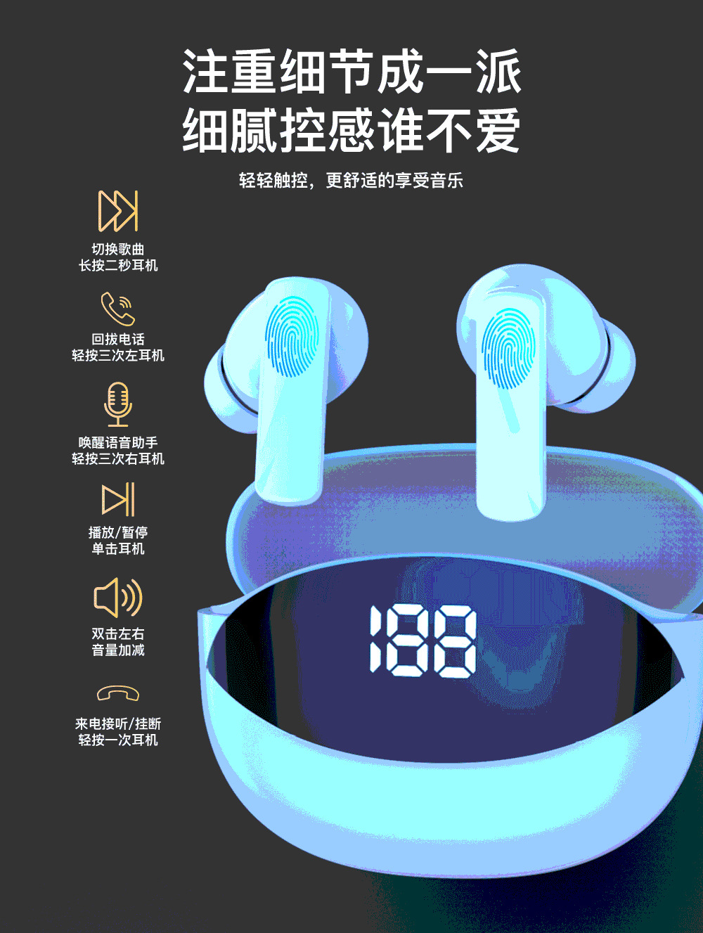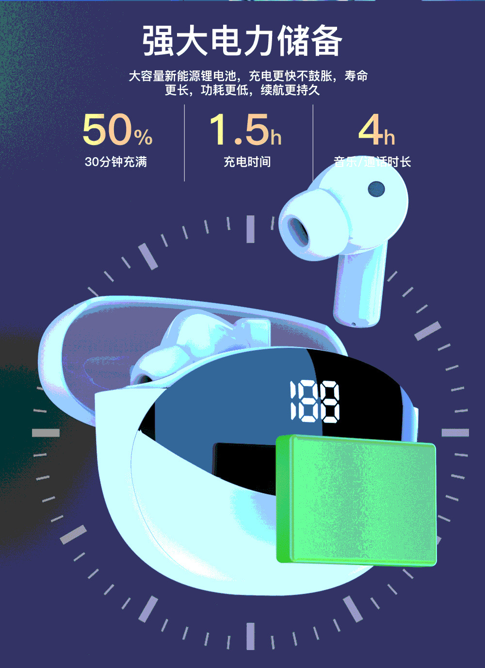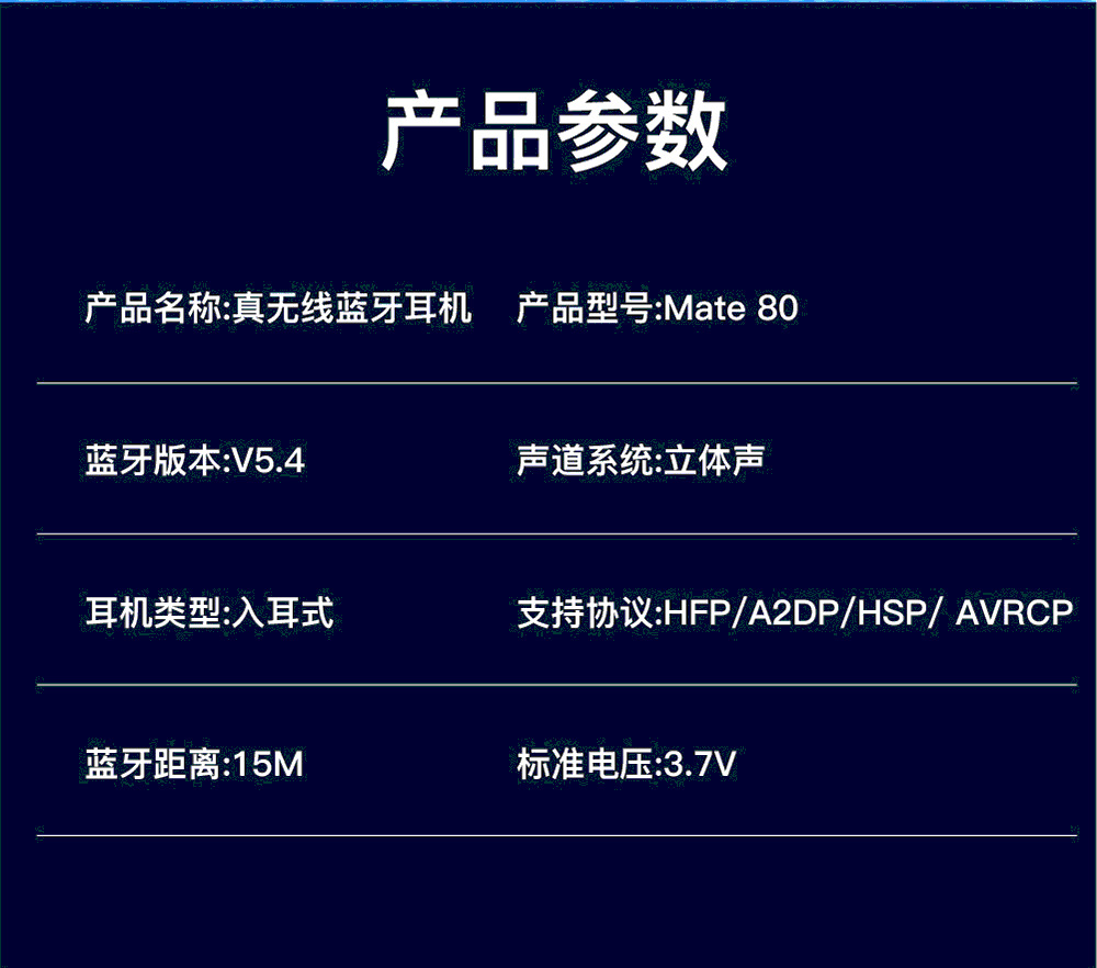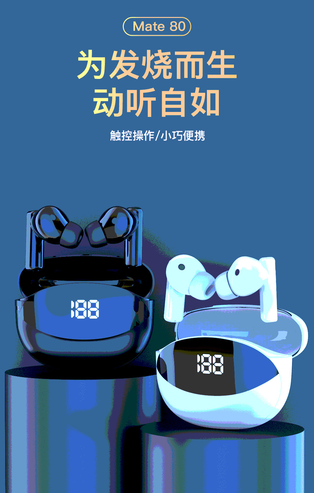 亚马逊新款mate80蓝牙耳机无线入耳式耳机立体声数显蓝牙耳机