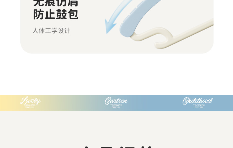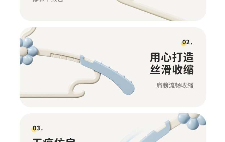儿童衣架无痕不起肩防滑家用婴儿宝宝加粗款加厚可伸缩收纳晾衣架