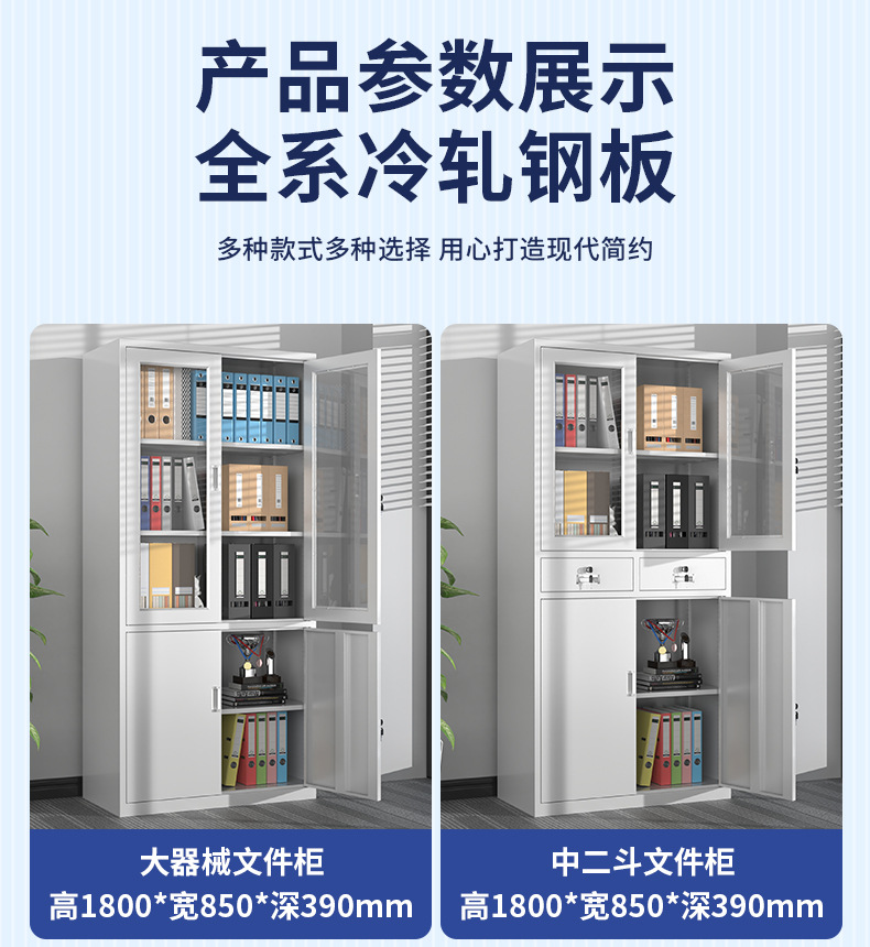 文件柜办公室铁皮资料柜财务凭证档案柜钢制员工宿舍储物柜更衣柜