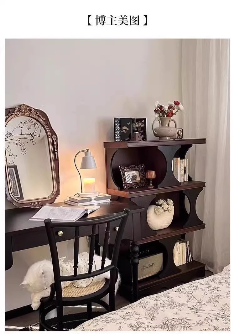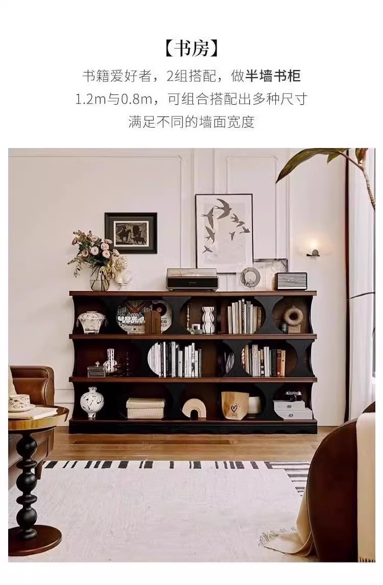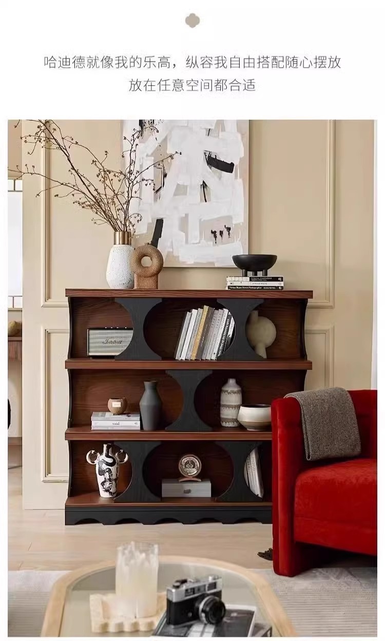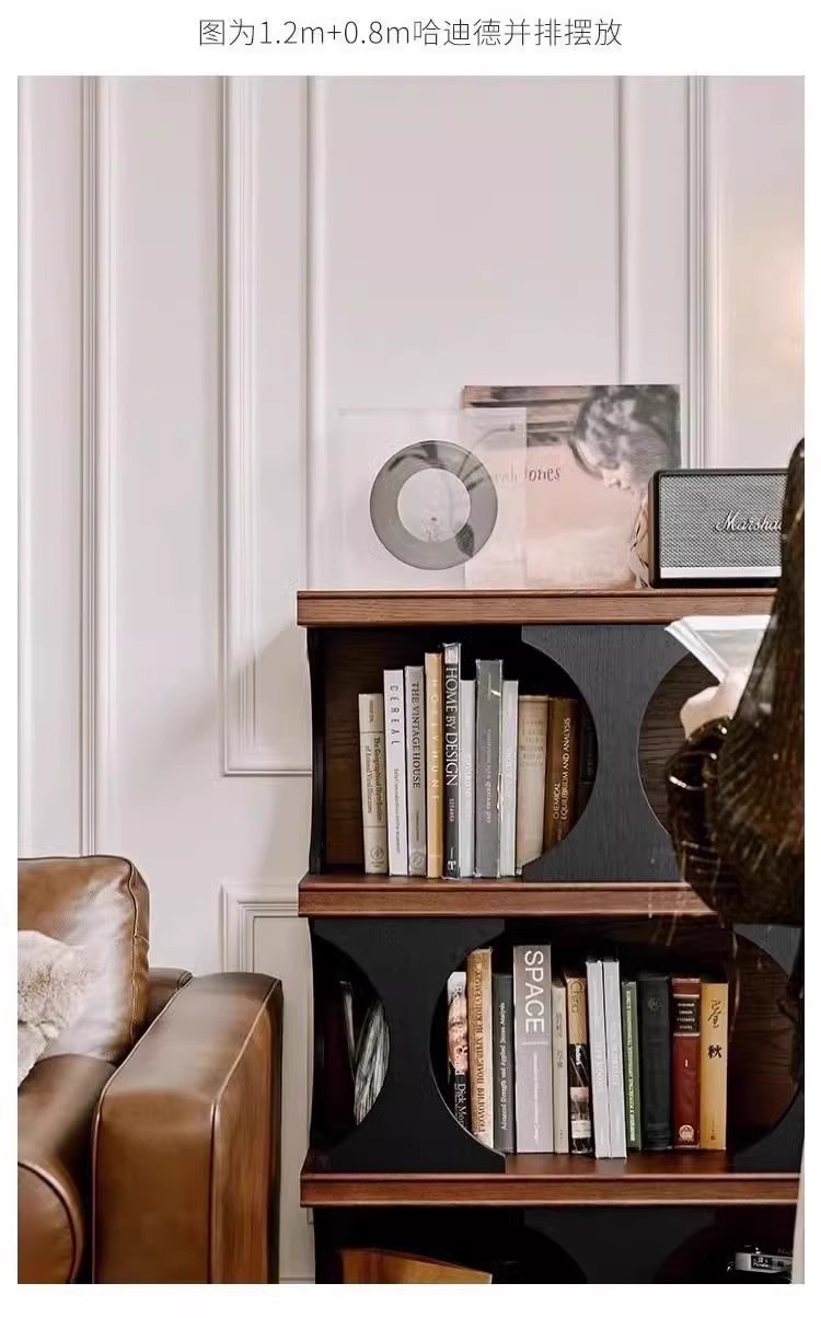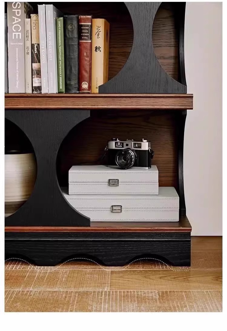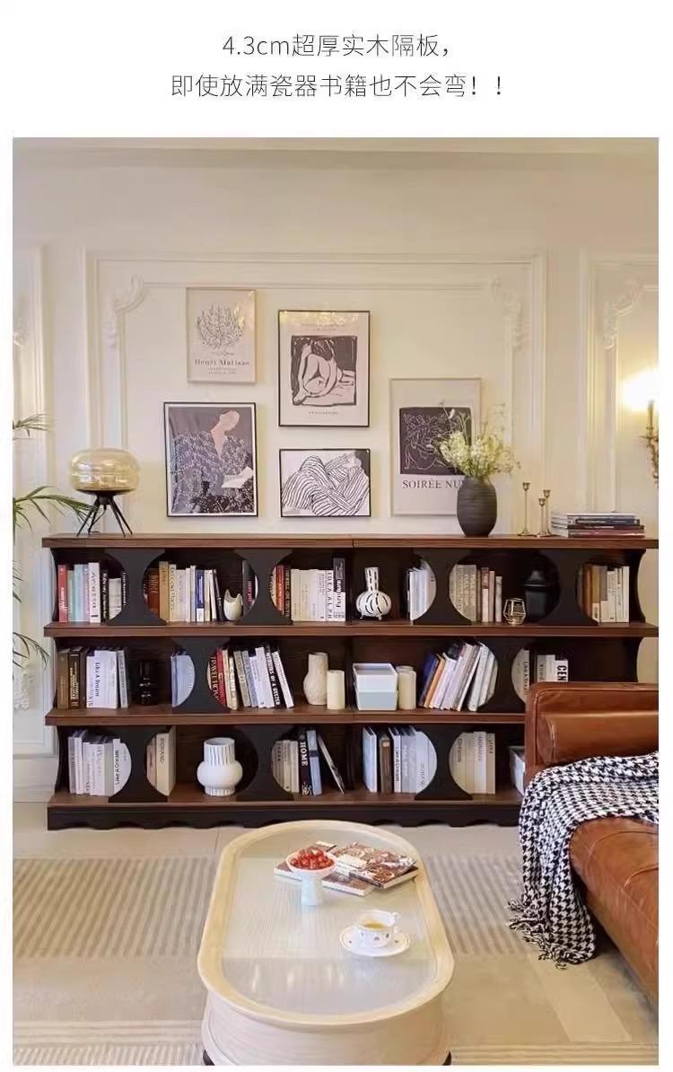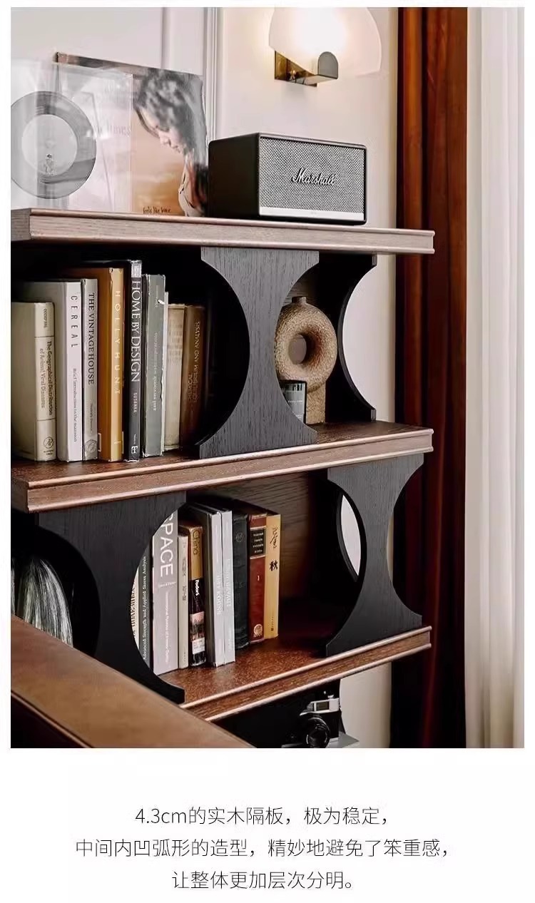 严选法式复古哈迪德实木书柜客厅展示柜中古风书房大容量落地书架