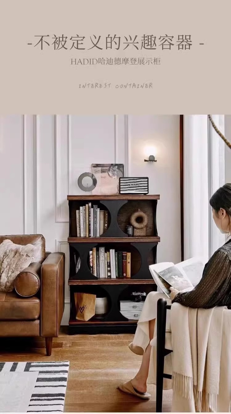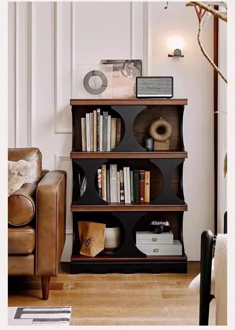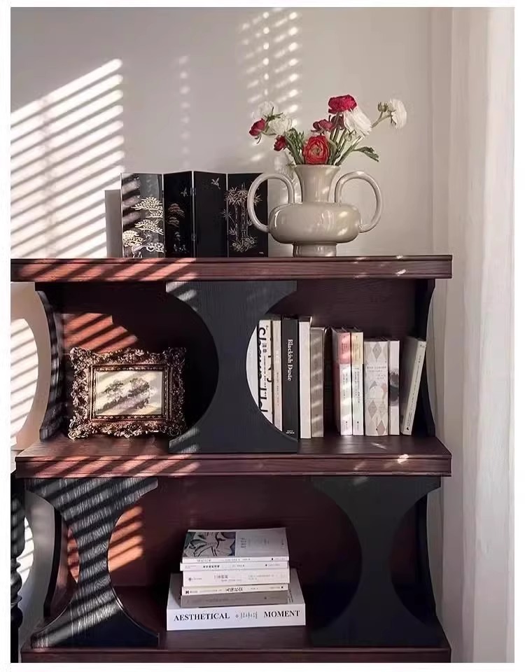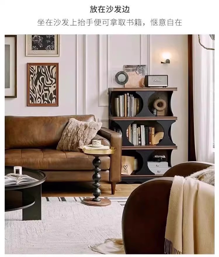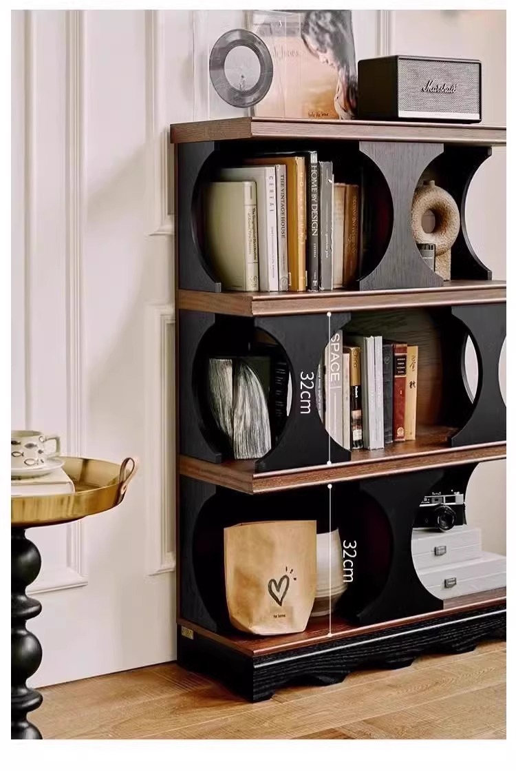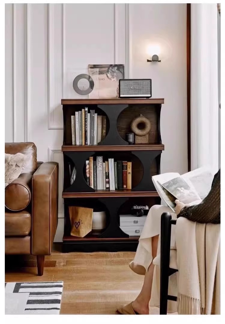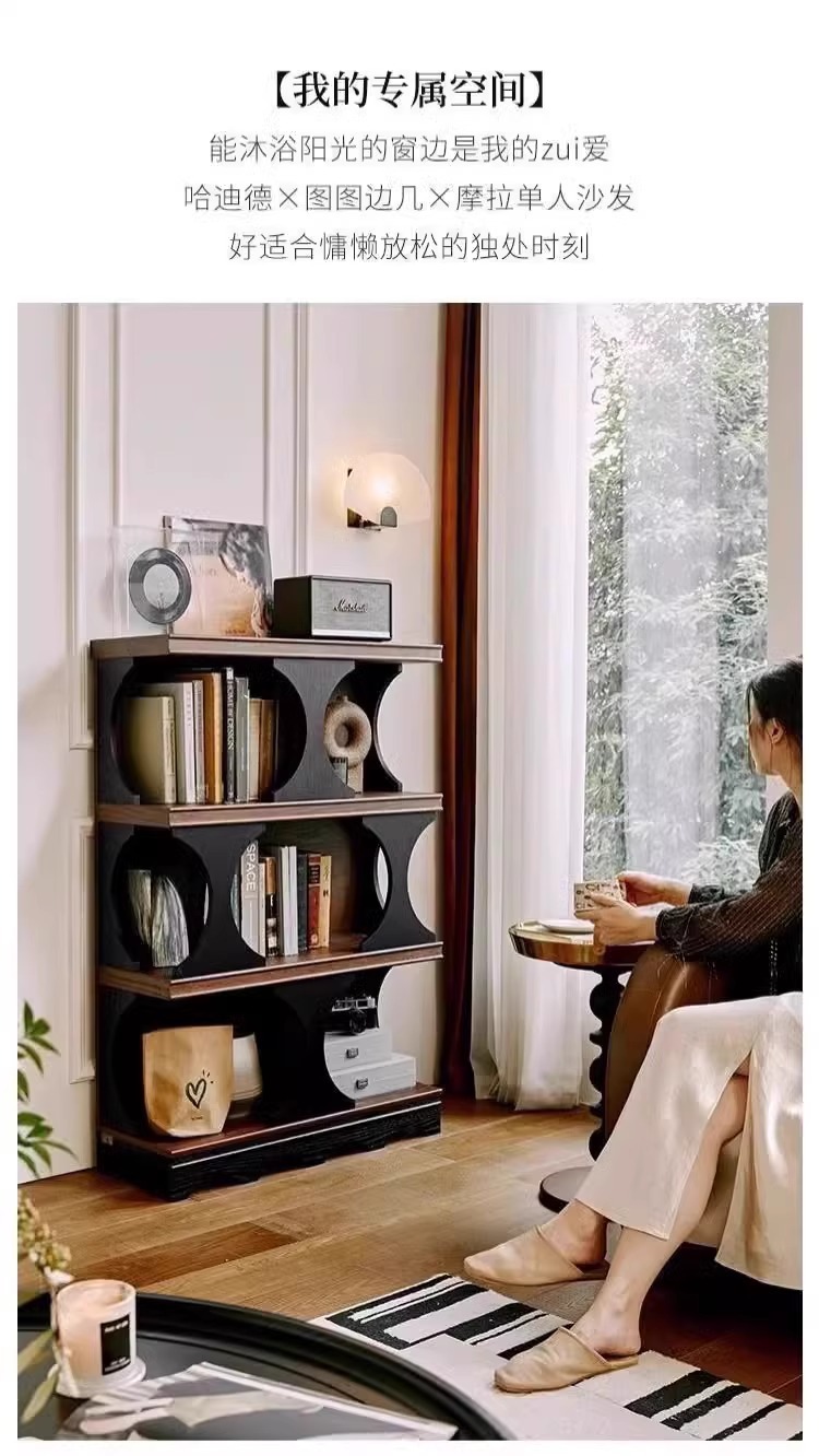 严选法式复古哈迪德实木书柜客厅展示柜中古风书房大容量落地书架