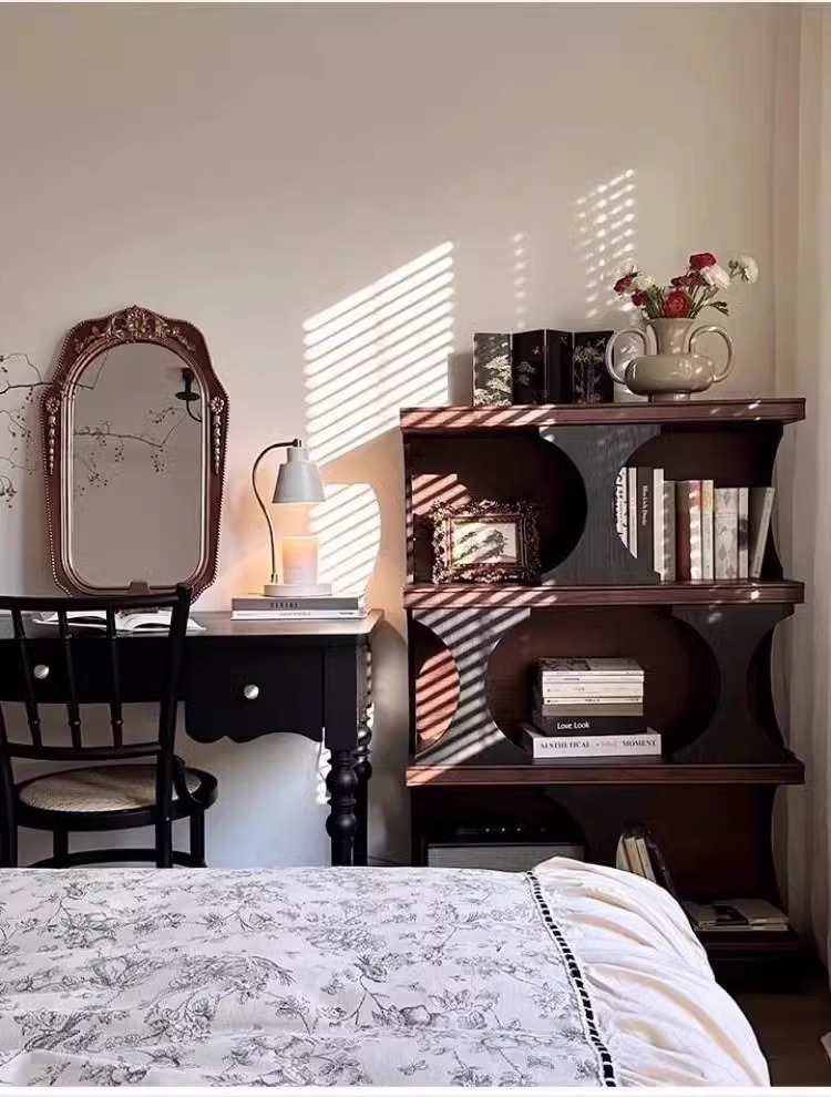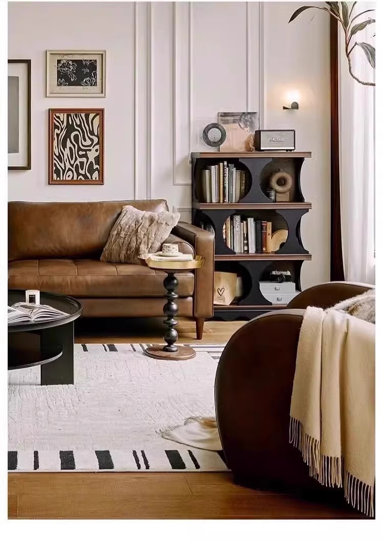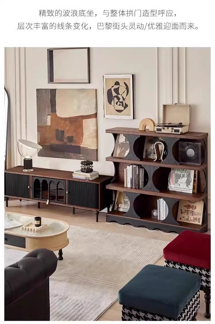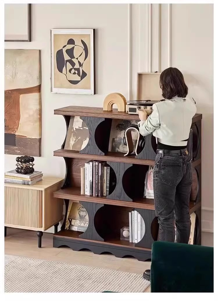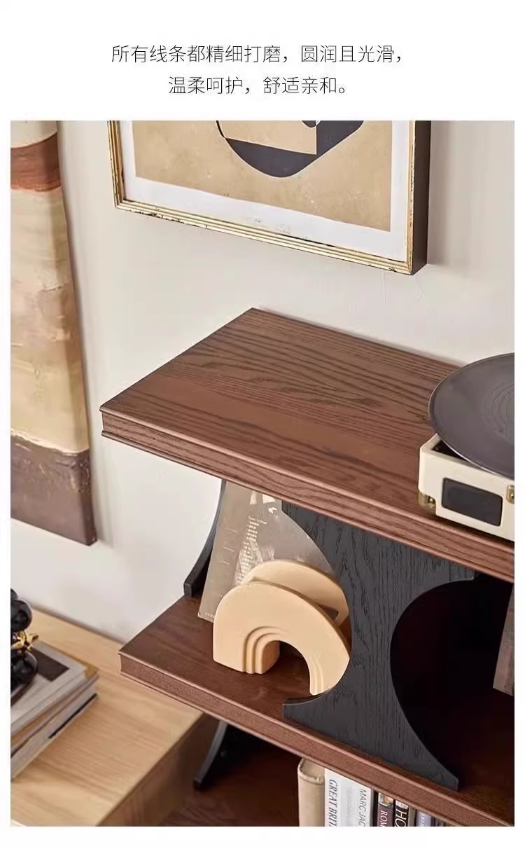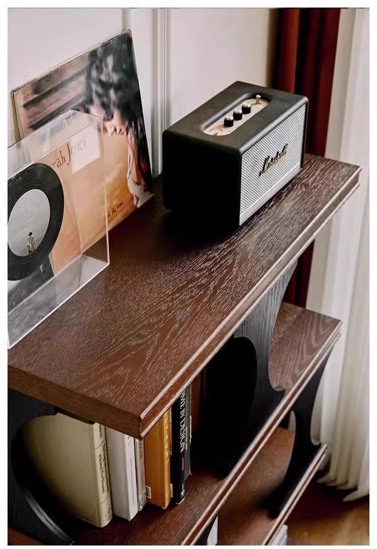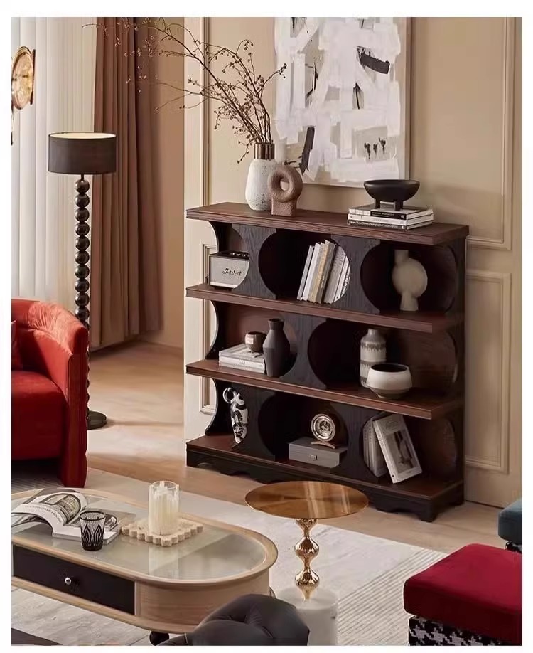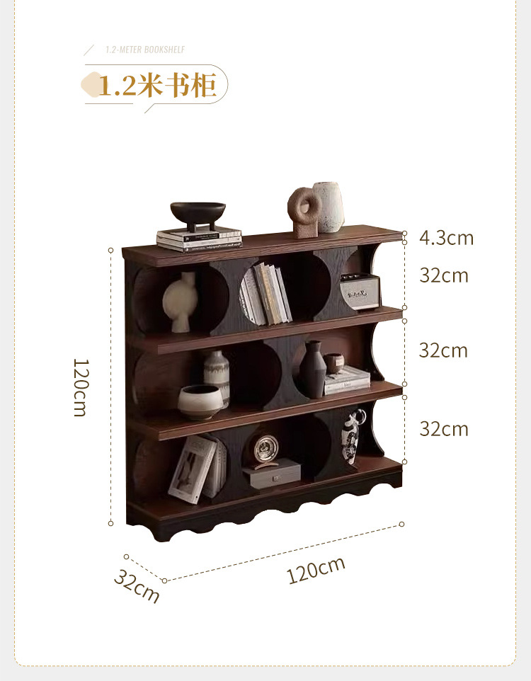 严选法式复古哈迪德实木书柜客厅展示柜中古风书房大容量落地书架
