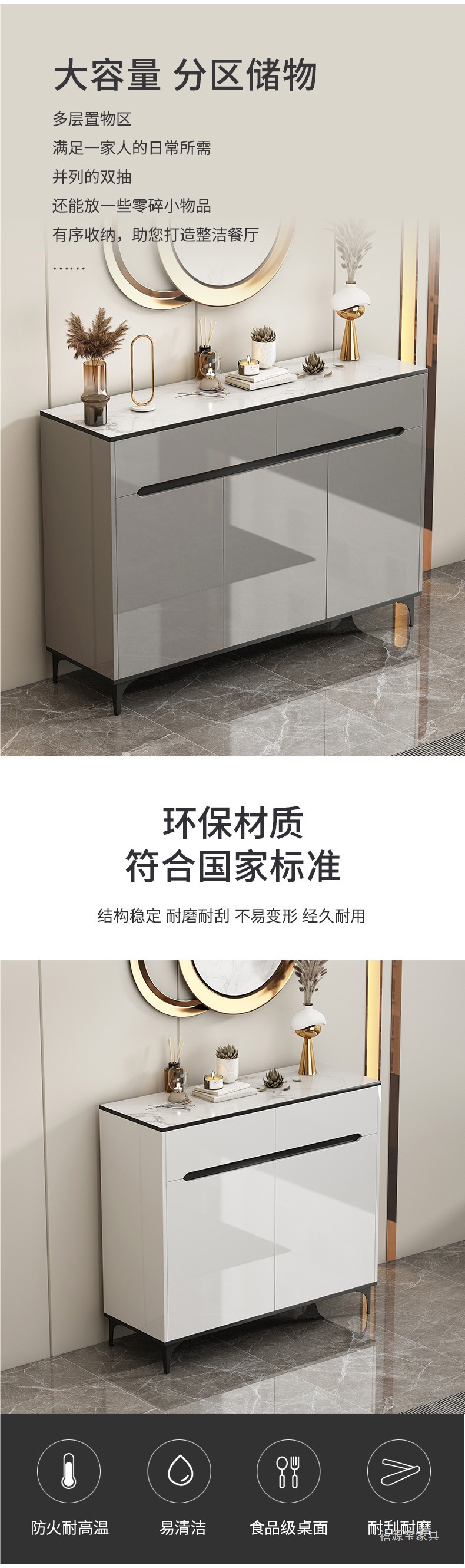 轻奢餐边柜客厅靠墙玄关柜现代简约边柜厨房碗柜储物置物柜茶水柜