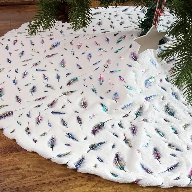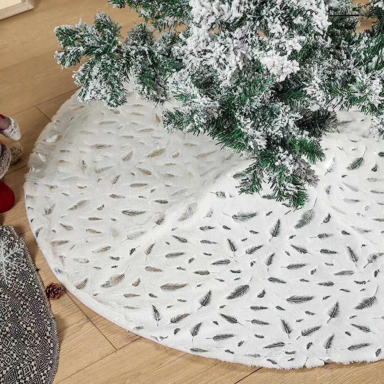 跨境圣诞树裙珠片树裙金色羽毛白色长毛绒树裙圣诞树地垫装饰毯