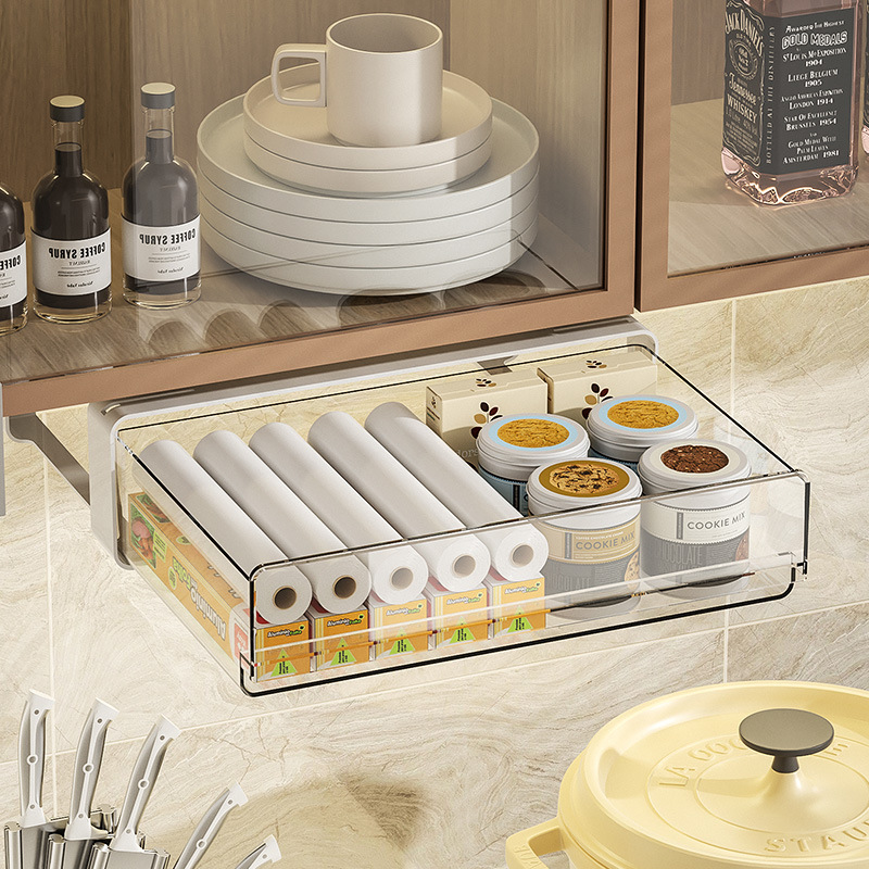 家用办公桌下塑料收纳盒隐藏式透明桌面收纳盒PET抽拉式收纳盒