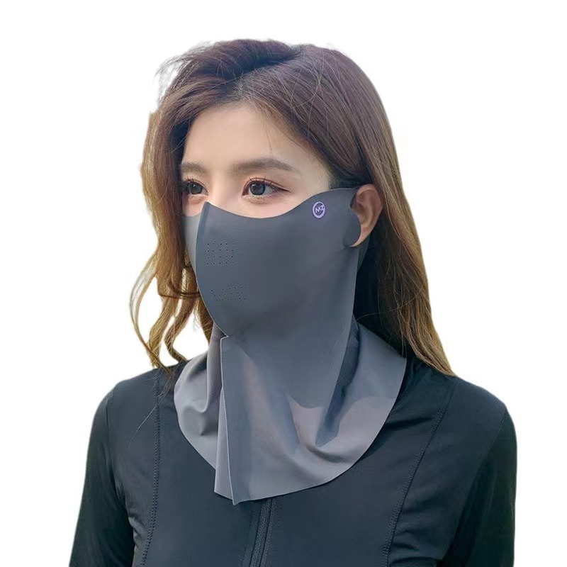 夏季女士冰丝口罩防晒面罩脸基尼户外骑行遮阳开口透气护眼角纯色