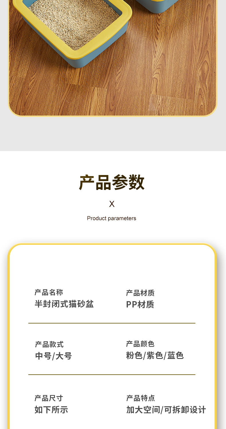 | semi-closed litter box (excluding cat litter scoop)(半封闭猫砂盆(不含猫砂铲)) | USD $1.35 | 6512 piece available |