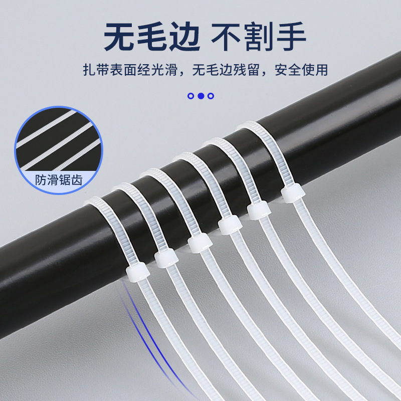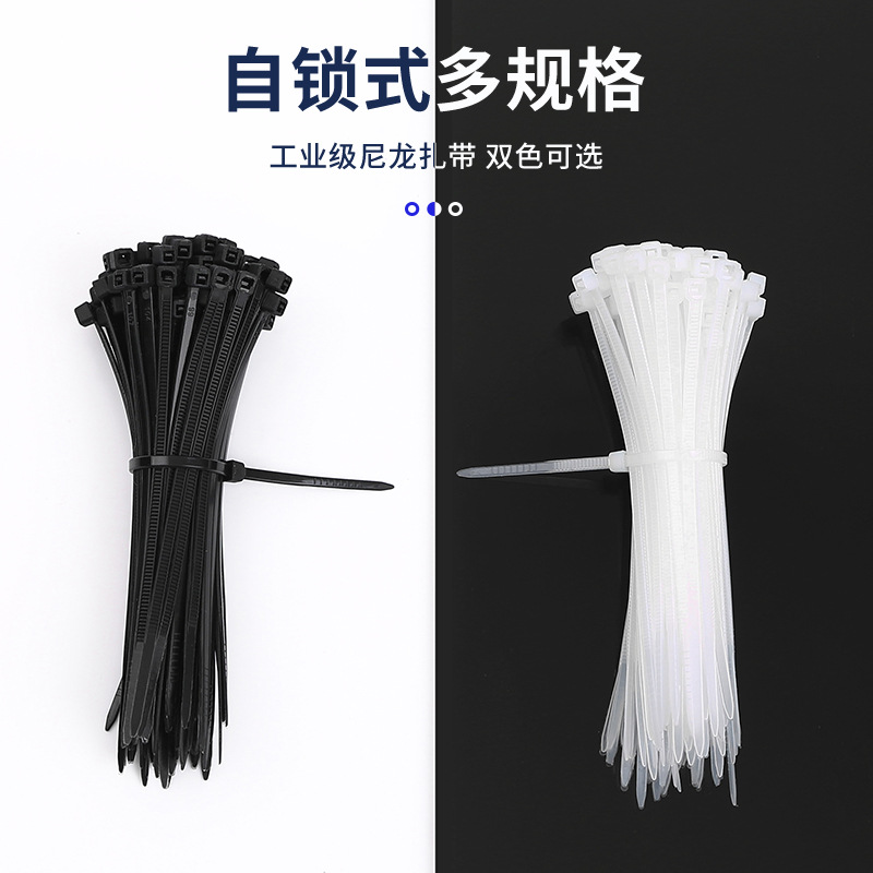 黑白色尼龙扎带自锁式塑料扎带捆绑束线带 自锁式尼龙扎带批发