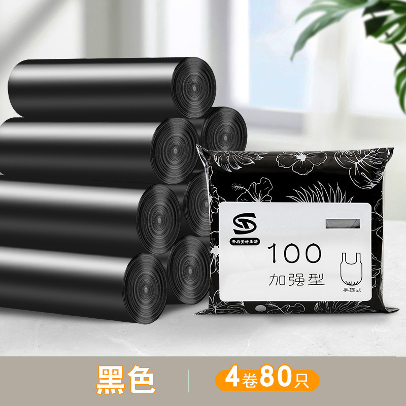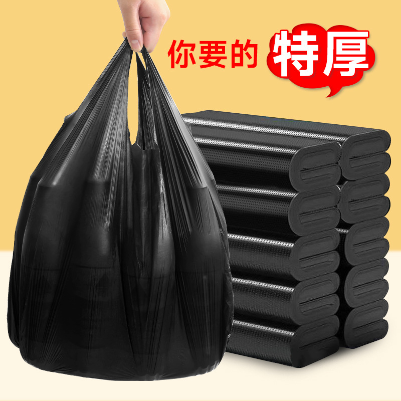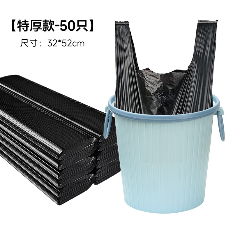【50个加厚背心式垃圾袋】厨房家用一次性黑色手提拉圾袋塑料袋子
