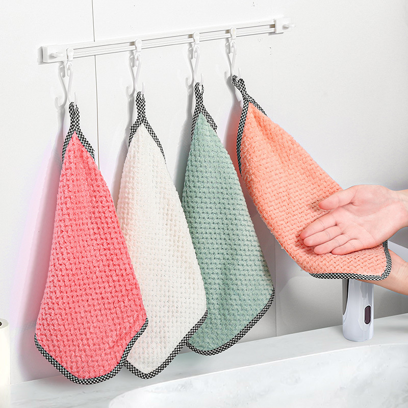 【可挂式珊瑚绒擦手巾】厨房家用洗手间小方巾不掉毛柔软耐脏吸水
