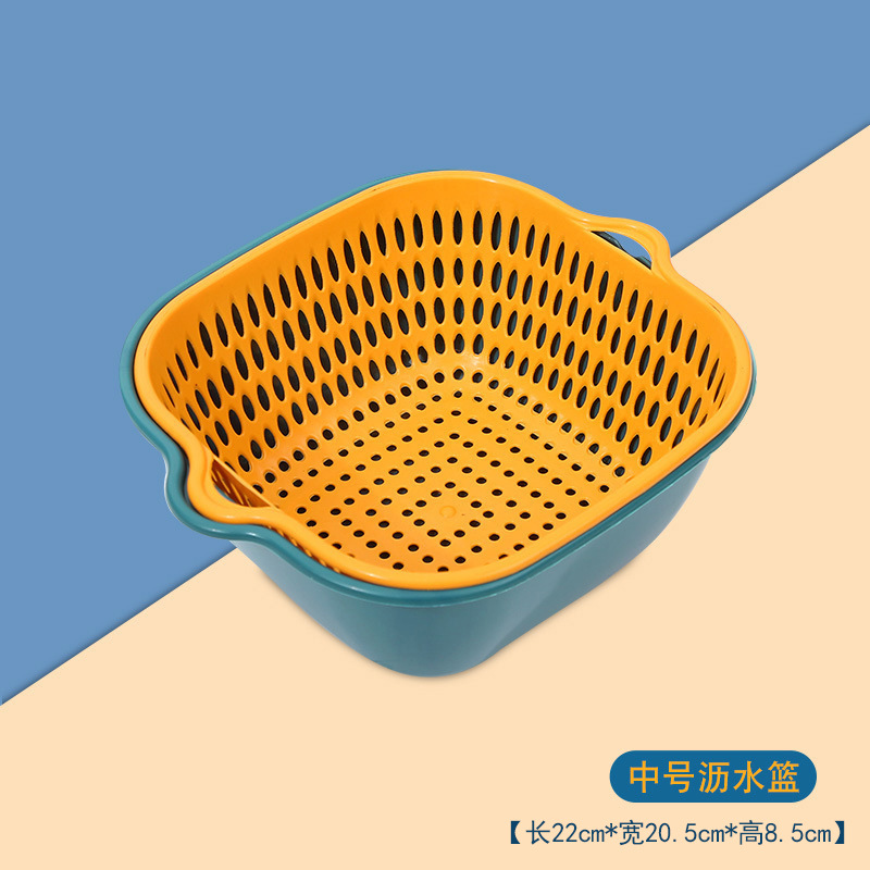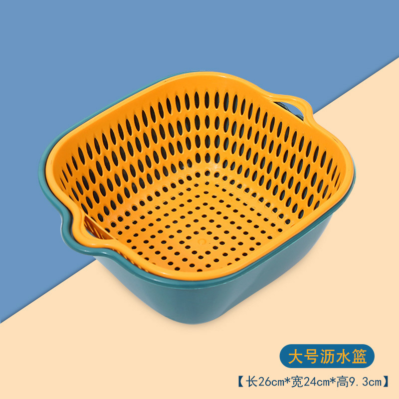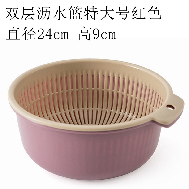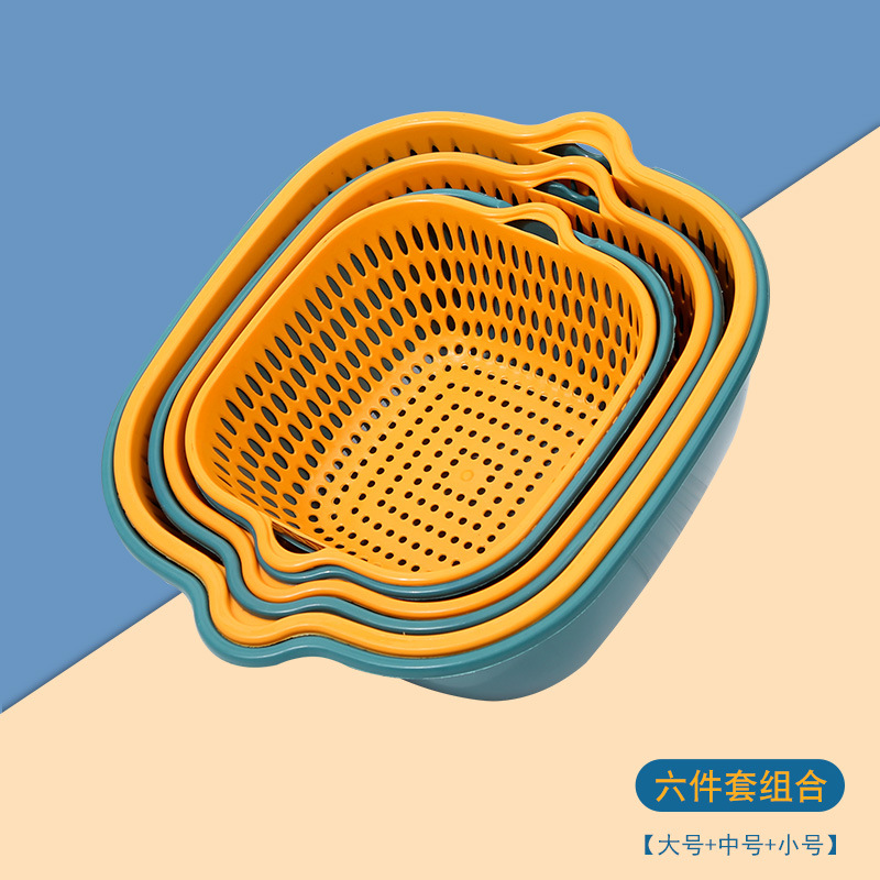 加厚沥水篮六件套 双层塑料洗菜盆 多功能厨房沥水筐家用水果篮子